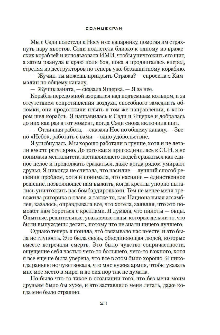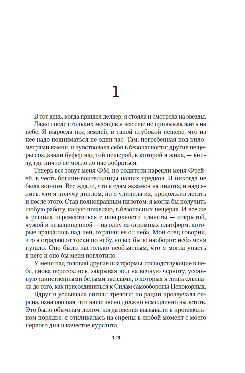 В романе "Устремленная в небо" юная Спенса добивается своей главной цели – стать пилотом космического истребителя Сил самообороны Непокорных на планете Россыпь, где укрылись остатки человечества.