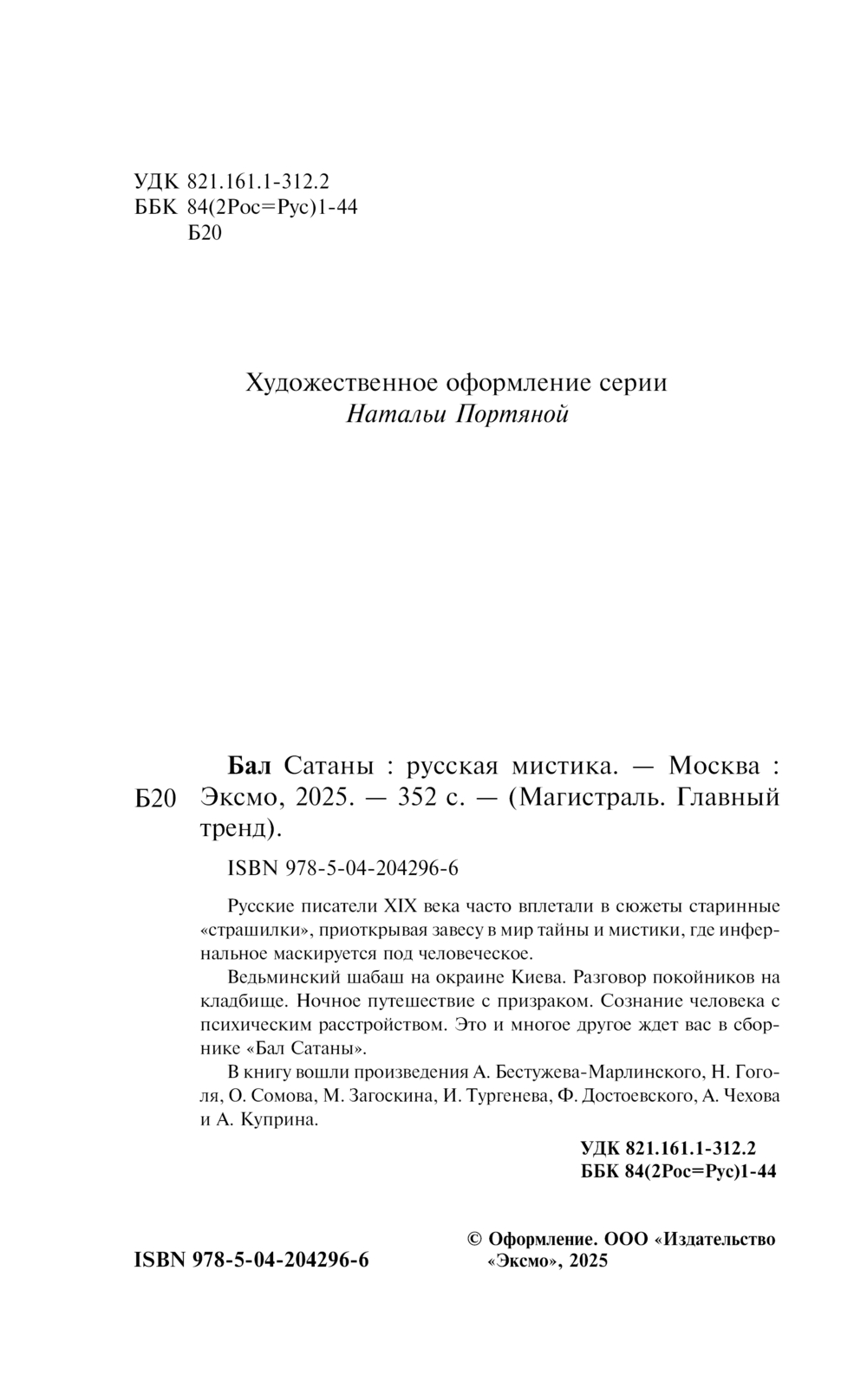 Ведьминский шабаш на окраине Киева. Разговор покойников на кладбище. Ночное путешествие с призраком. Сознание человека с психическим расстройством. Это и многое другое ждет вас в сборнике "Бал Сатаны".