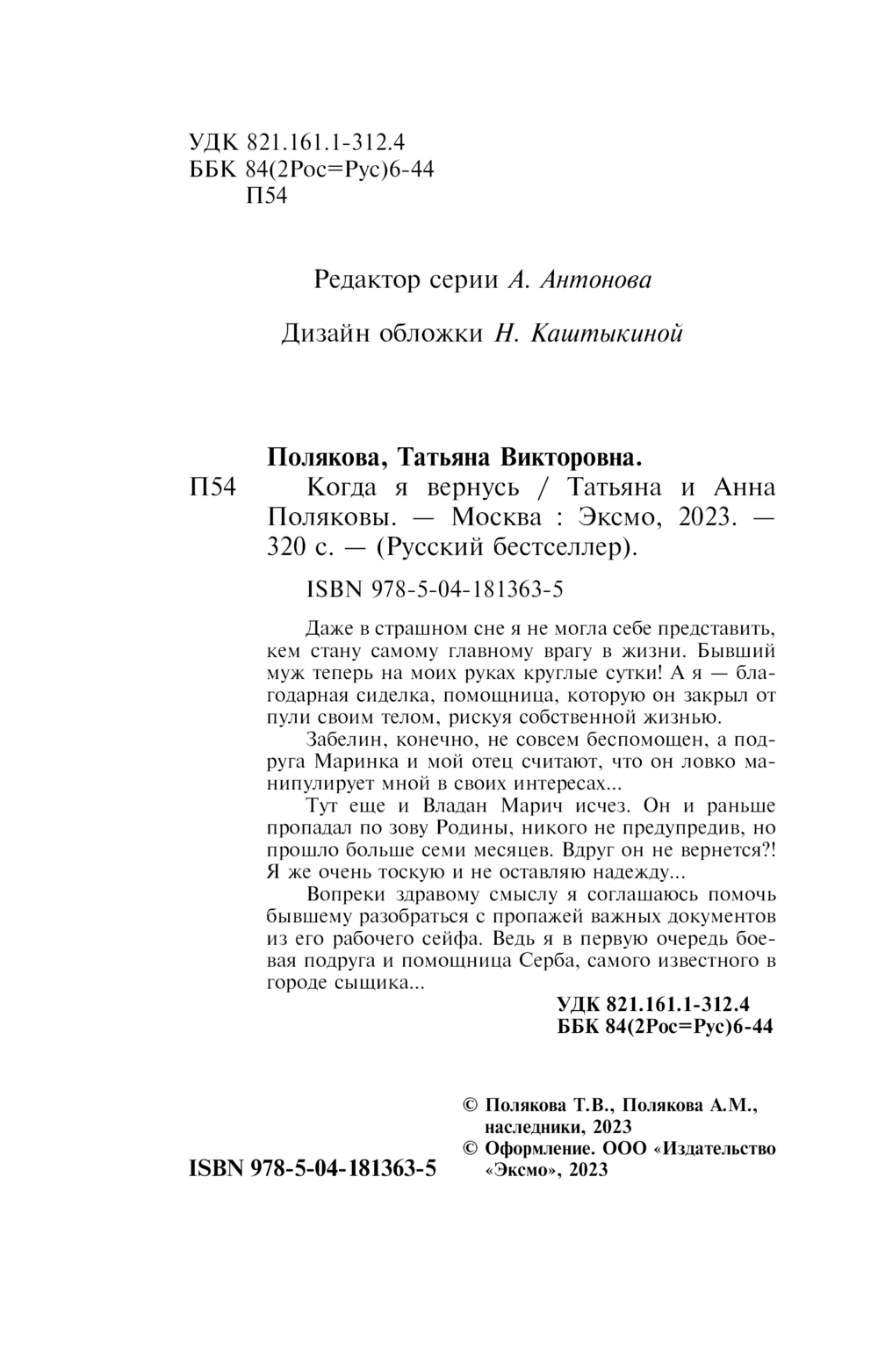 | Серия | Детективы с авантюрой Татьяны и Анны Поляковых |