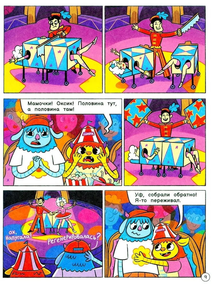 Окс и Покс с планеты Мокс приглашают тебя в захватывающий мир фокусов. Они отправляются в увлекательные каникулы на планету Земля и попадают на цирковое представление. Окс и Покс расскажут тебе, как удивить друзей, раскроют секреты простых и эффектных фокусов, а также организуют представление на своей родной планете. Ты узнаешь, как платок попадает в яйцо, как научиться жонглировать, и сможешь повторить все фокусы, подготовленные моксами для тебя. Чудеса начинаются, главное – не забыть произнести волшебные слова: "Окс! Покс! Мокс!"