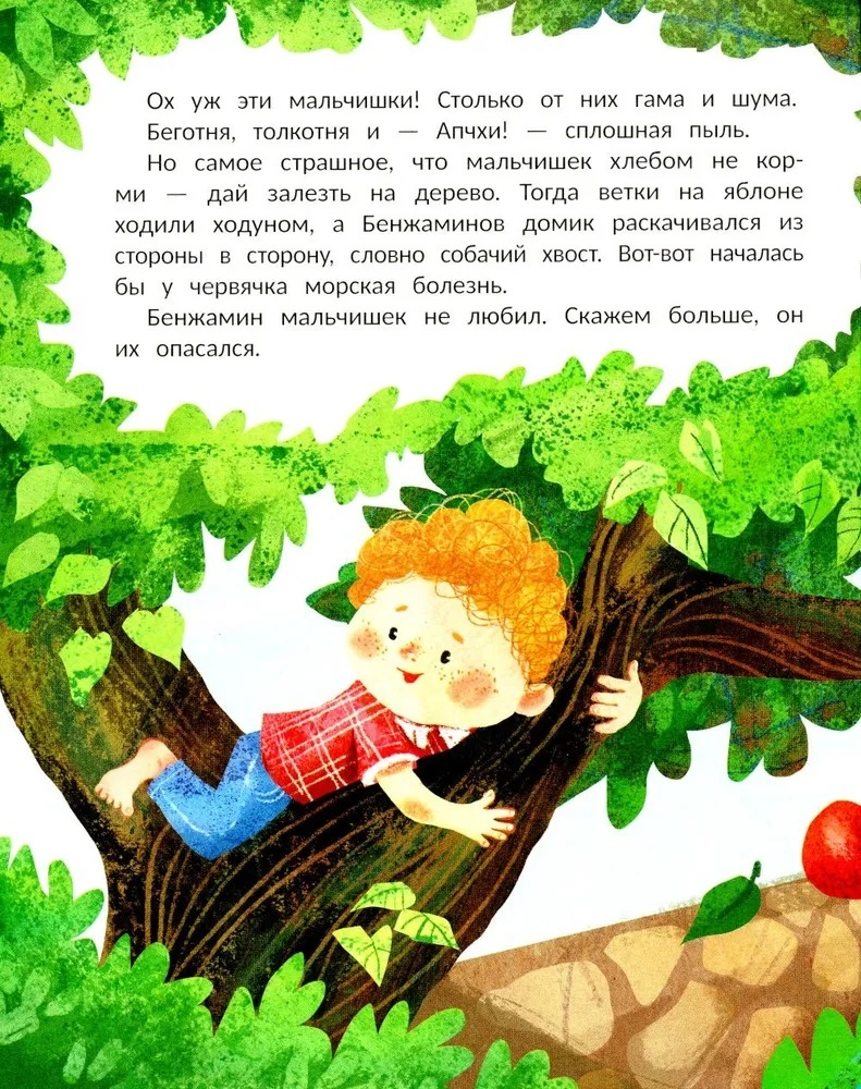 Червячок Бенжамин живёт в яблоке на дереве и не любит мальчишек, ведь они всегда шумят. Но однажды он знакомится с Витей, который любит читать книжки и не лазает по деревьям, как остальные мальчишки. Бенжамин соскальзывает вниз и обнаруживает на страницах Витиной книги странных "жуков". Так начинается история необычной дружбы, благодаря которой Бенжамин становится книжным червячком!