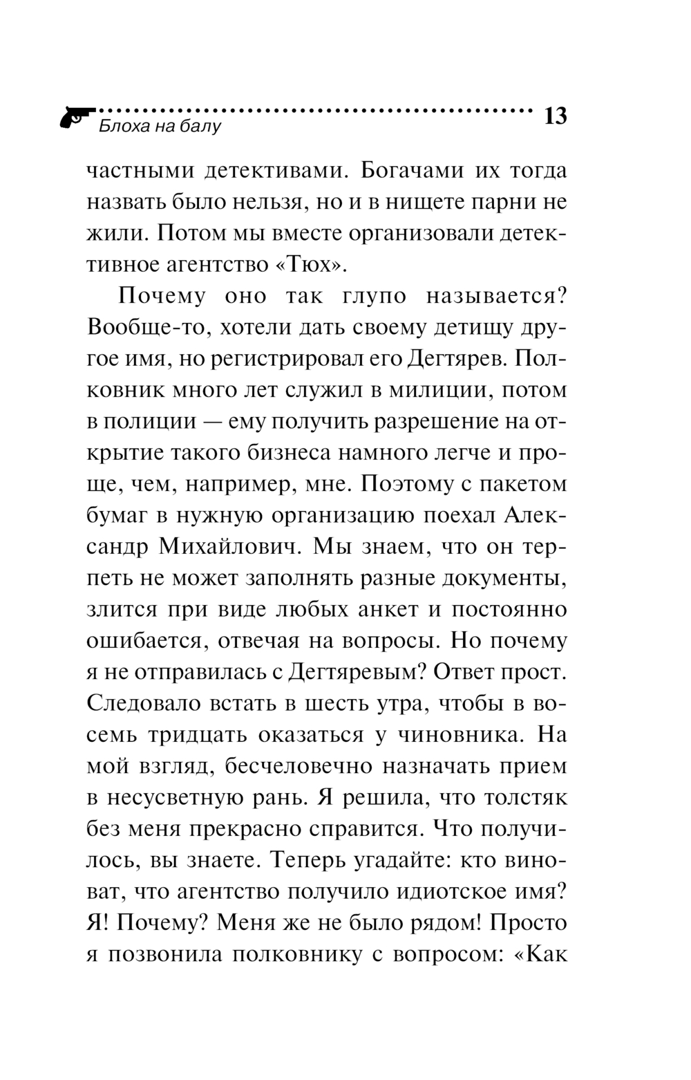 Повелитель ноутбуков и король клавиатуры, компьютерный гений агентства "Тюх" Кузя познакомился с Аленой в сетевой игре "Война двух стран". Почти год Кузя ездил к ней в гости, все было хорошо. И вот в один не самый прекрасный день девушка внезапно присылает ему прощальную эсэмэс и обрывает все контакты. Парень впадает в уныние и не может больше нормально работать. Так что Дарья решает найти девушку и выяснить, что сподвигло ее на столь стремительный и необоснованный разрыв. Ну что может быть проще, чем разыскать вздорную девицу? Легкая прогулка! Нашла Дашенька, нашла... Но не то, что хотела, а ревность, смерть, убийство и предательство.