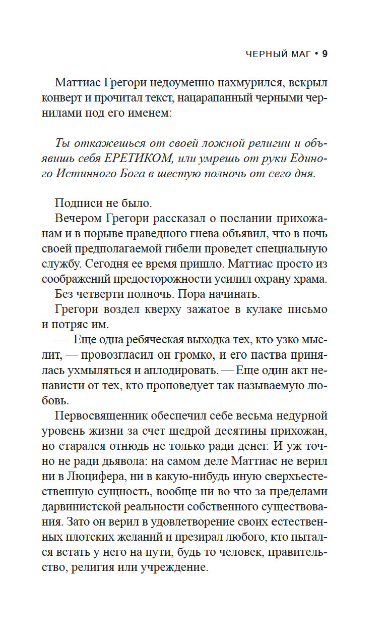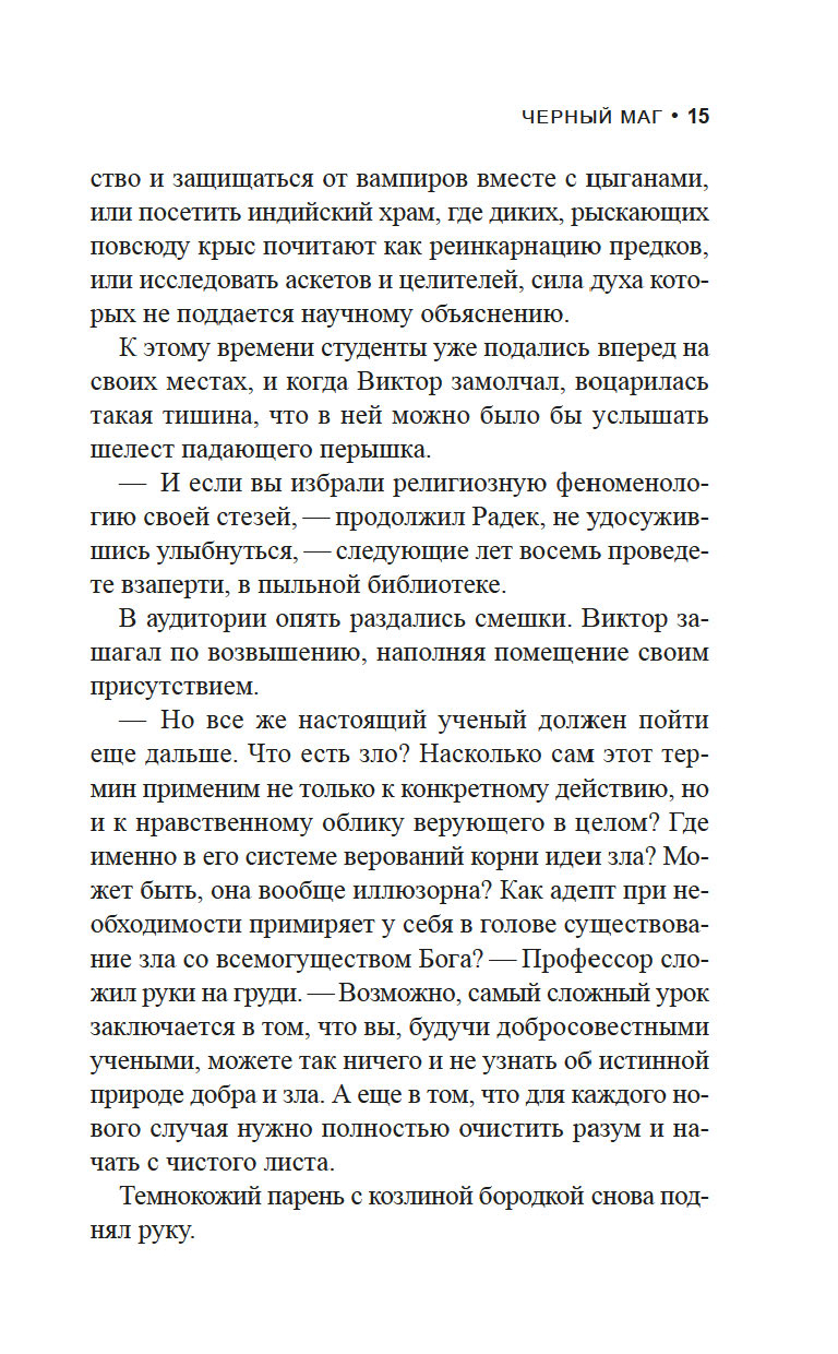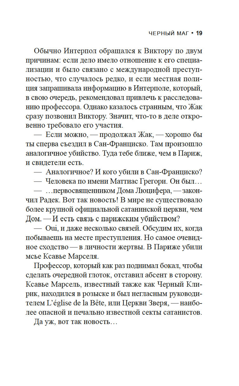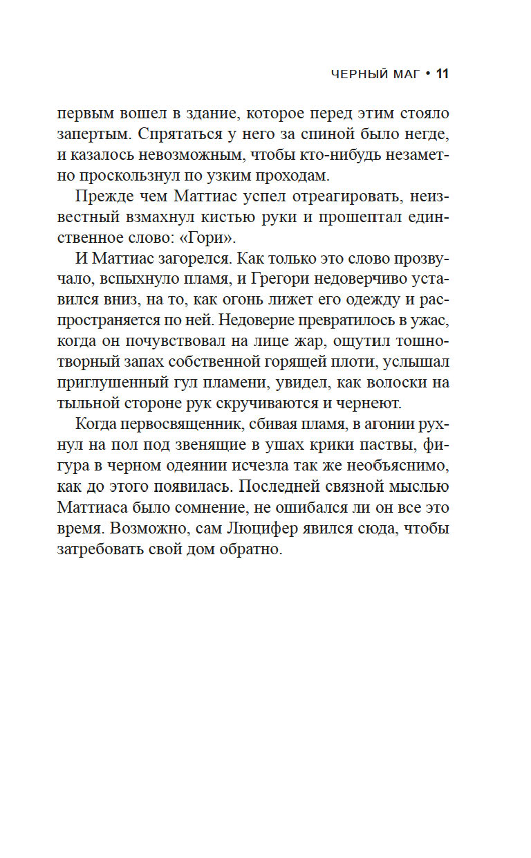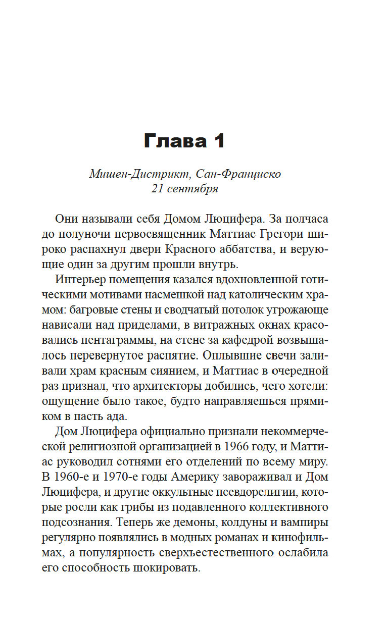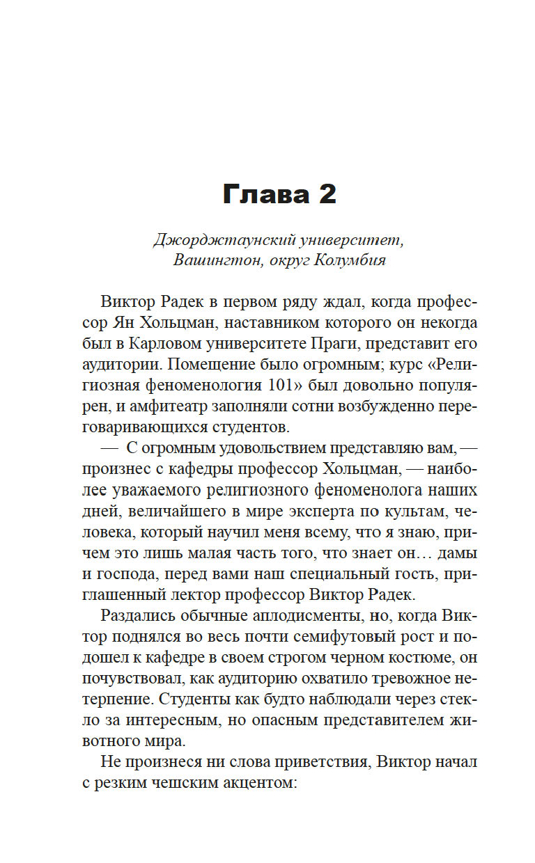 У детективов Виктора Радека, профессора религиозной феноменологии, и Доминика Грея, бывшего морпеха, особая специализация: они расследуют преступления, связанные с таинственными и необъяснимыми явлениями. Их ждет очередное жуткое дело: загадочная фигура в черной мантии сжигает лидеров скандальных сатанинских сект. И хотя впору подумать о потусторонней каре за грехи, у напарников другое мнение...