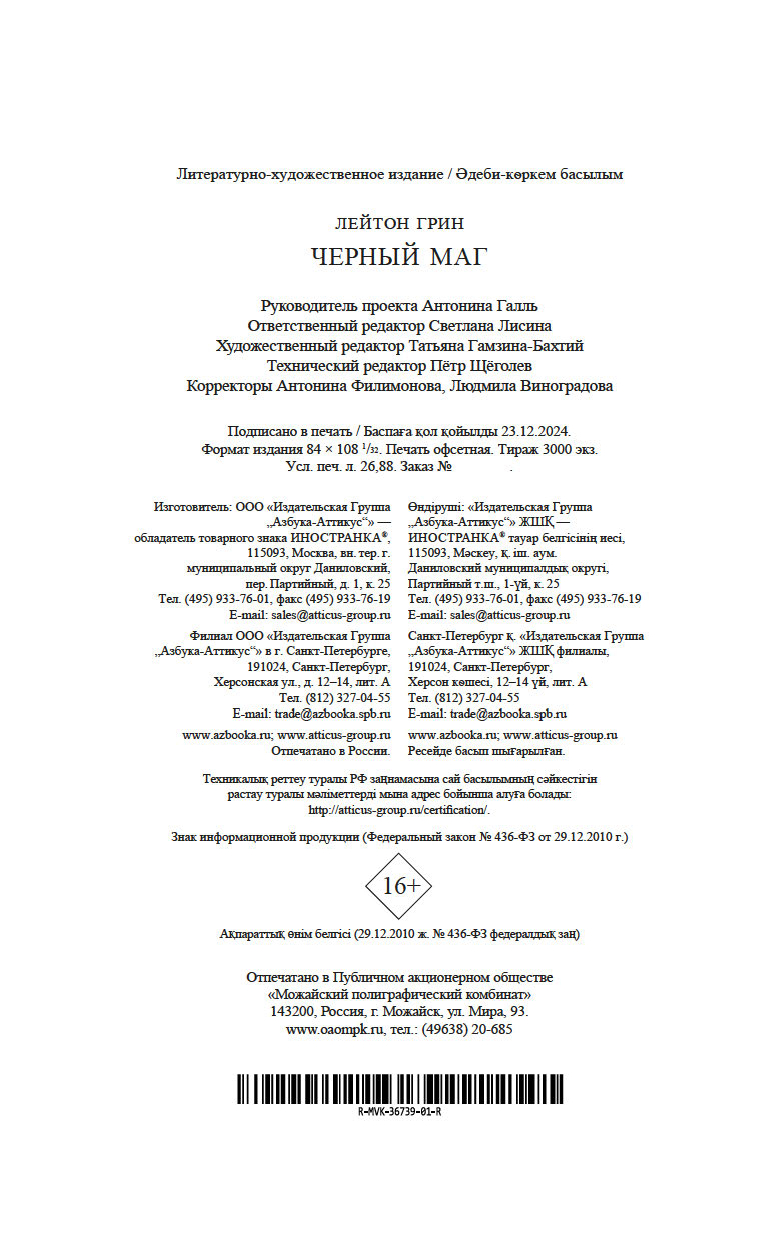 | Изготовитель | ООО "Издательство "Иностранка". 109017, РФ, г. Москва, ул. Пятницкая, 41 |