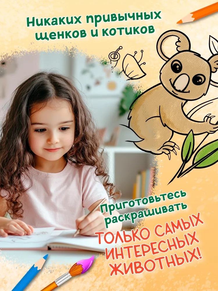 Знакомим детей с миром удивительных пушистых животных! Вместо всем привычных щенков и котиков приготовьтесь раскрашивать капибару, альпаку, фенека и других милых пушистых обитателей нашей планеты.