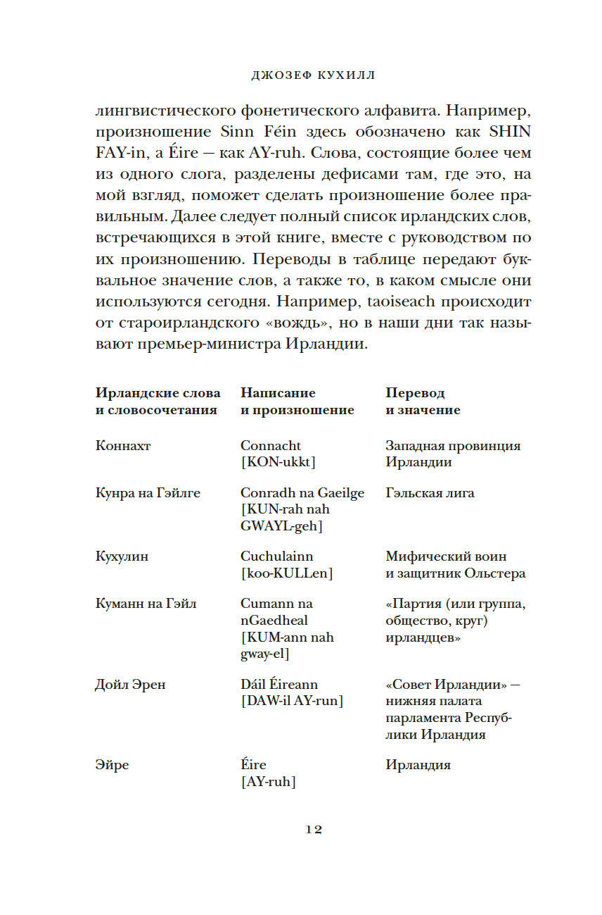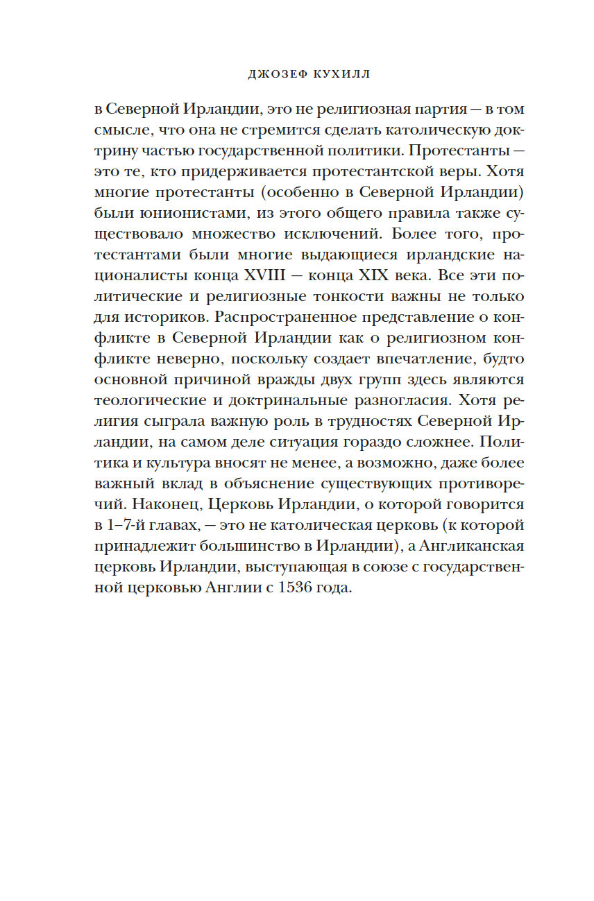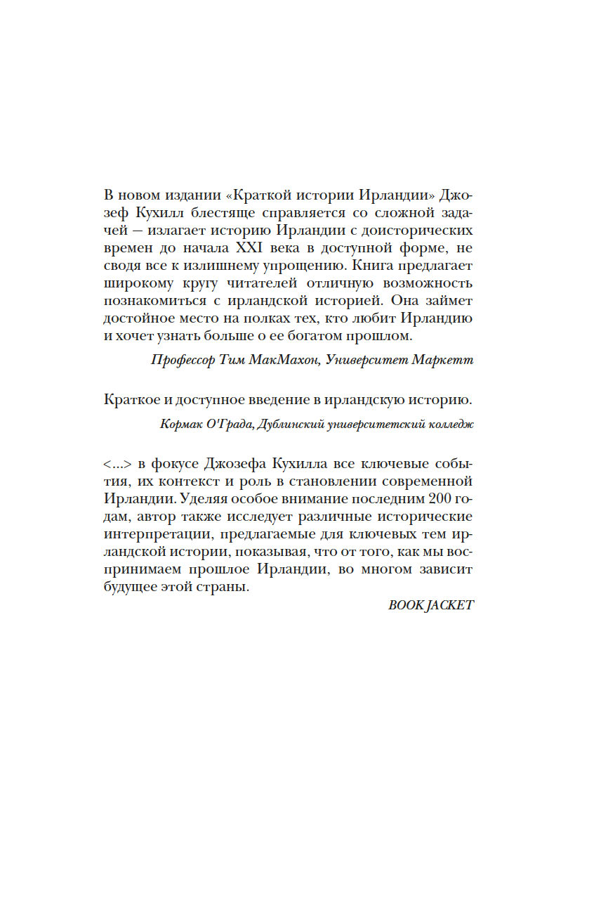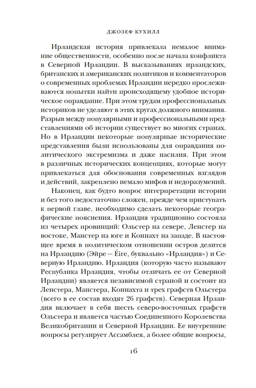 Много веков Ирландия, отдаленный остров на краю Европы, занимала особое место в мировой культуре. За 8000 лет Ирландии пришлось пережить гражданские войны, вражеские набеги и завоевания, голод и религиозные расколы, но этот уникальный и самобытный остров не потерял связь с древними традициями. Британский историк Джозеф Кухилл мастерски описывает захватывающие события прошлого и непростую судьбу ирландцев в настоящем, раскрывая многогранный характер этой страны. Какими были древнекельтские поселения? Как вторжение викингов изменило историю острова? В чем заключалась миссия святого Патрика? Как ирландцам удалось сохранить свой язык? Эта книга заново откроет для вас невероятный остров с удивительной судьбой.
