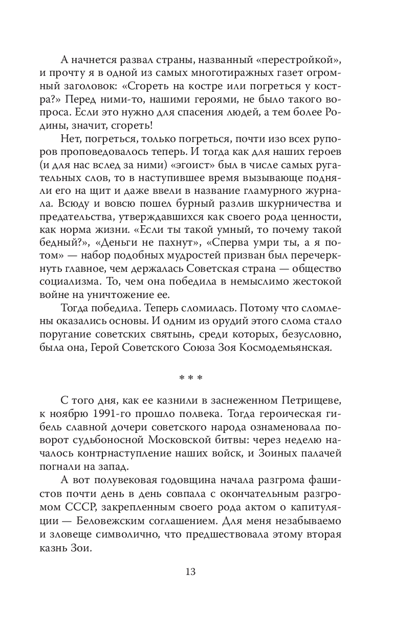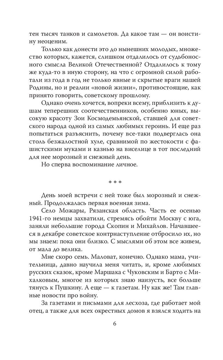 Среди всех имён героев Великой Отечественной войны есть одно, ставшее нарицательным. Зоя Космодемьянская стала первой женщиной, получившей звание Героя Советского Союза... Посмертно. Жизненному пути юной девушки от выпускного вечера до ее героической гибели 29 ноября 1941 года посвящена эта книга. Ее подвиг придал сил миллионам солдат в самый критический момент. Когда немцы вплотную подошли к Москве, юная Зоя стала символом грядущей Победы.