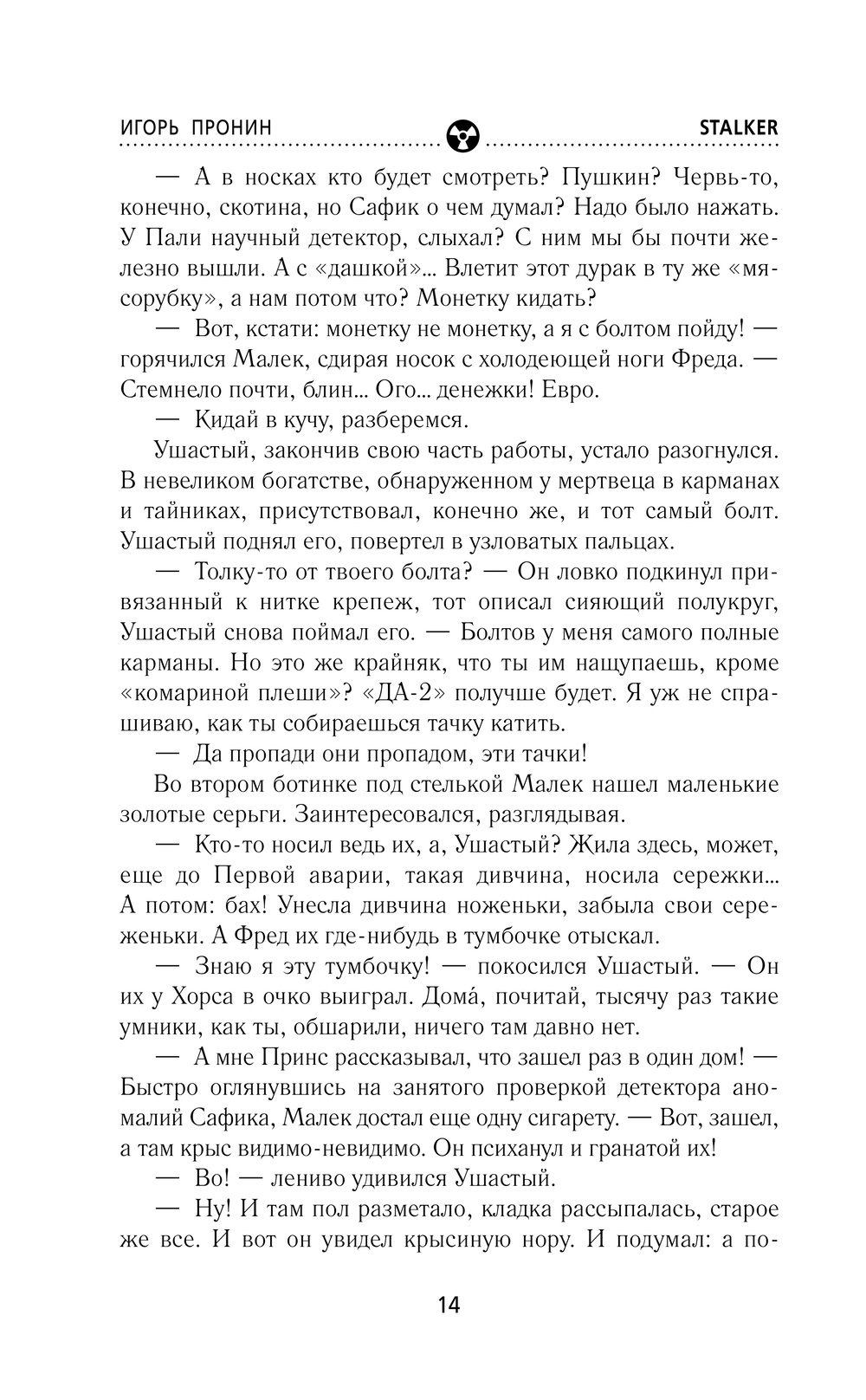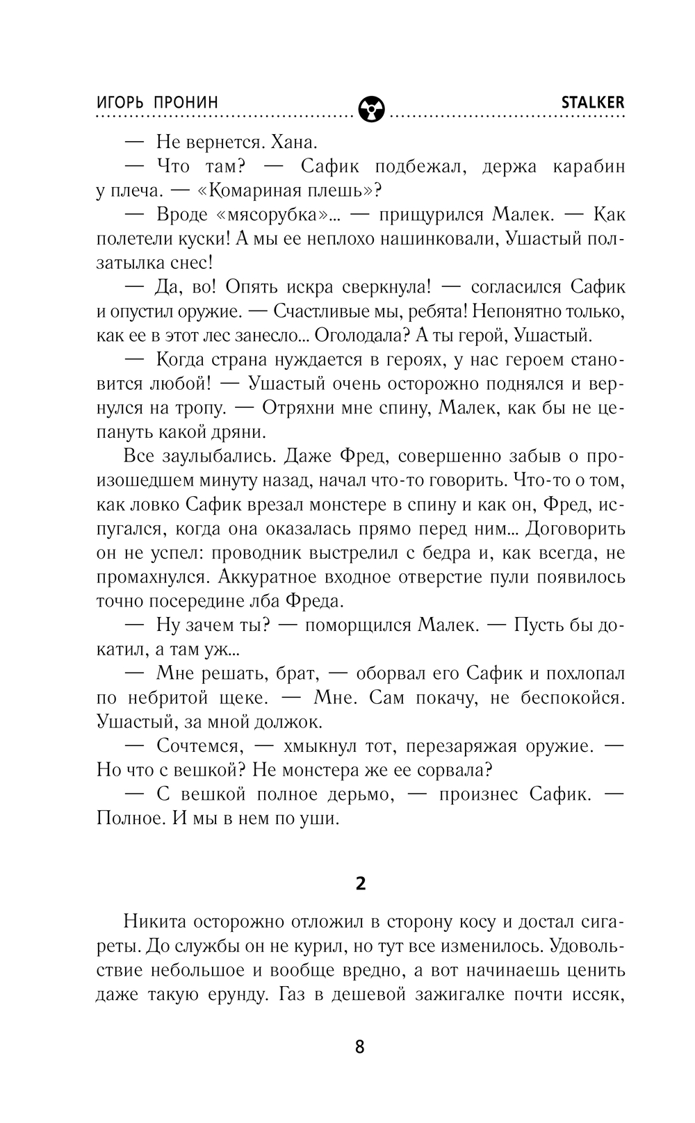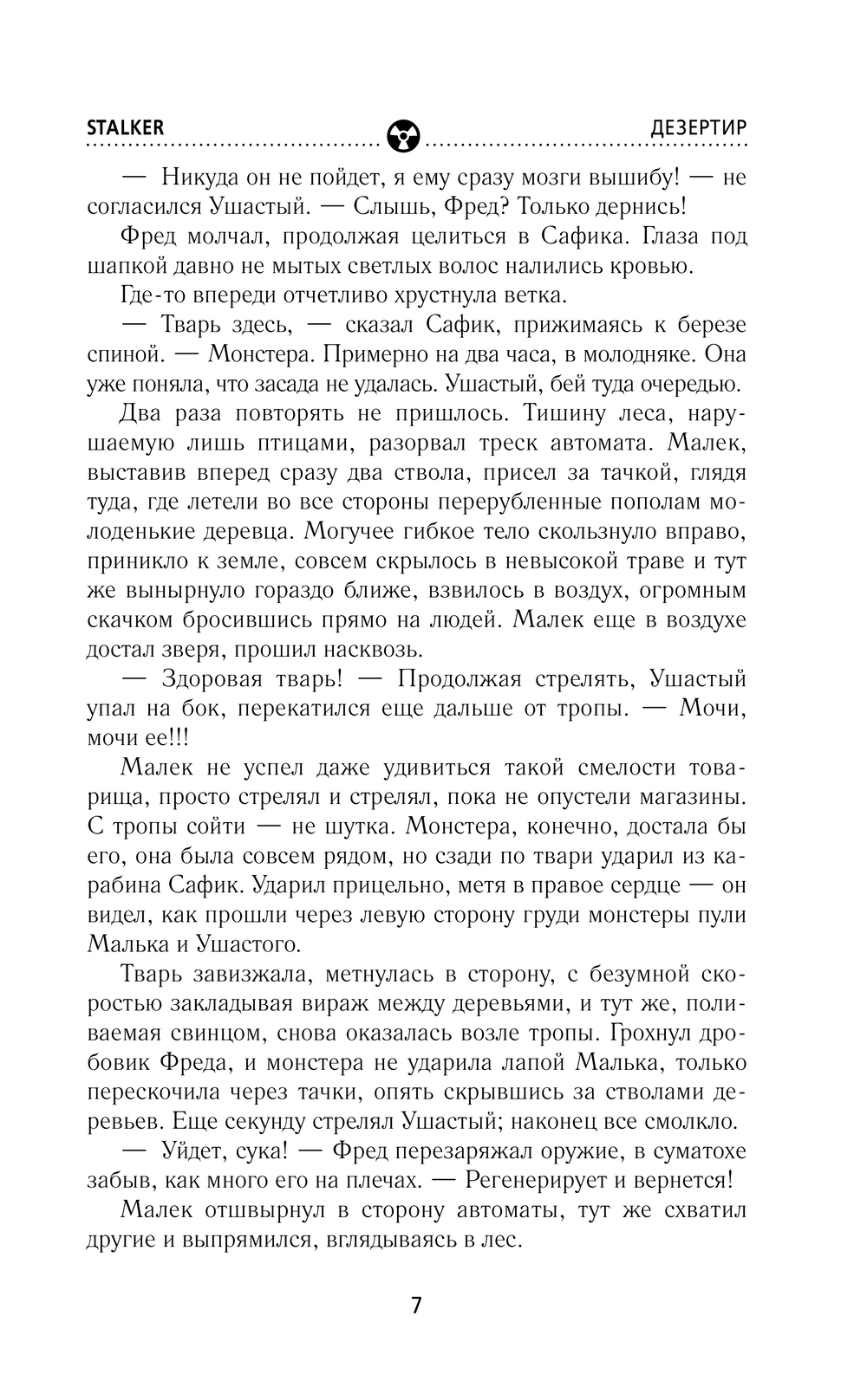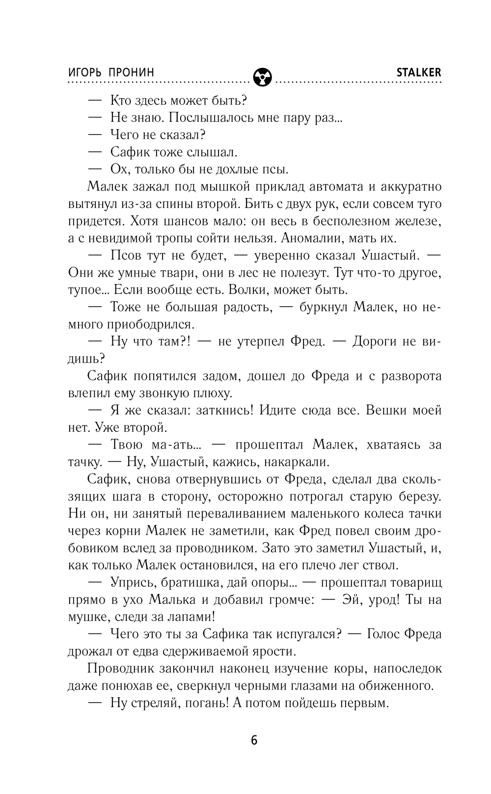 Вот только на запретной территории жизнь не слаще, а ее обитатели – куда беспощаднее "дедов" и офицеров. Опасности тут подстерегают на каждом шагу и на любой вкус: радиация, выбросы аномальной энергии, смертельные ловушки, мутанты... Впрочем, со временем и к этому можно приспособиться. Но как свыкнуться с бесконечной войной группировок, с хитростью, подлостью и предательством людей? И есть ли шанс при этом самому остаться человеком?