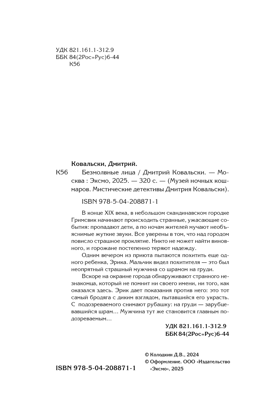 | Серия | Музей ночных кошмаров. Мистические детективы Дмитрия Ковальски |