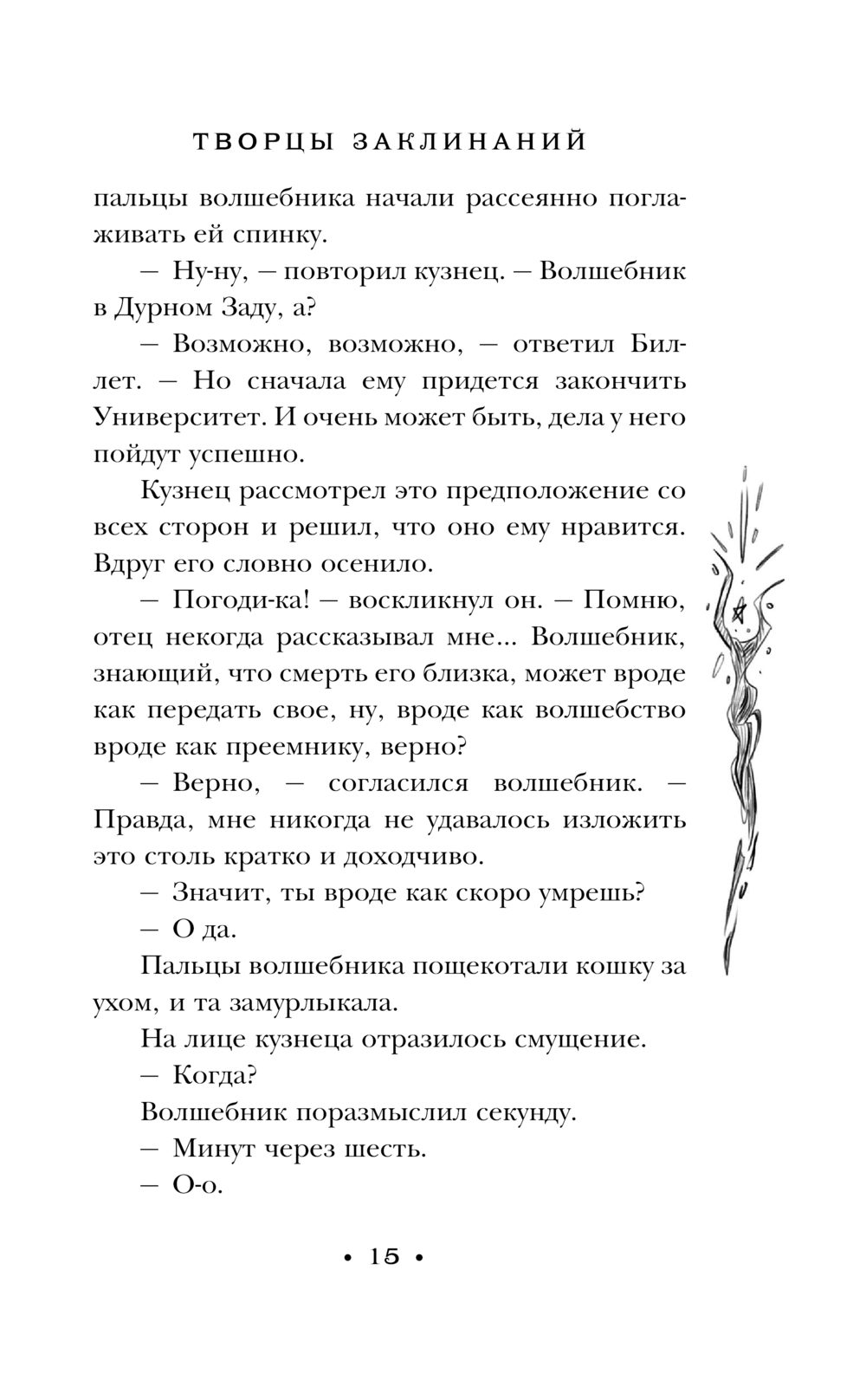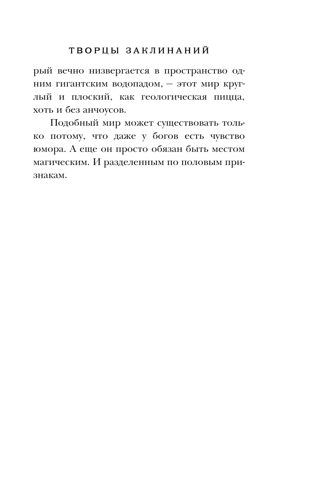 Что касается таких вещей, как вино, женщины и песни, то волшебникам позволяется надираться до чертиков и горланить во все горло, сколько им вздумается. А вот женщины… Женщины и настоящая магия несовместимы. Магический Закон никогда не допустит появления особы женского пола в Незримом Университете, центре и оплоте волшебства на Диске. Но если вдруг такое случится…