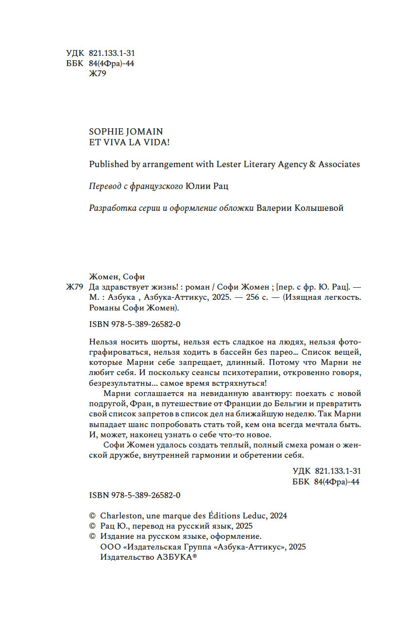 Софи Жомен удалось создать теплый, полный смеха роман, о женской дружбе, внутренней гармонии и обретении себя.