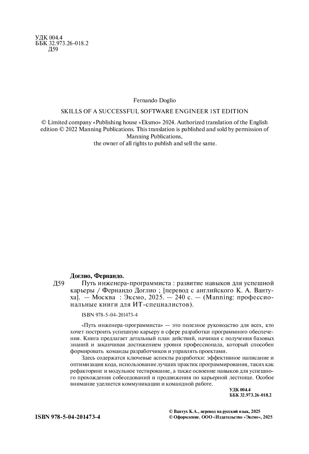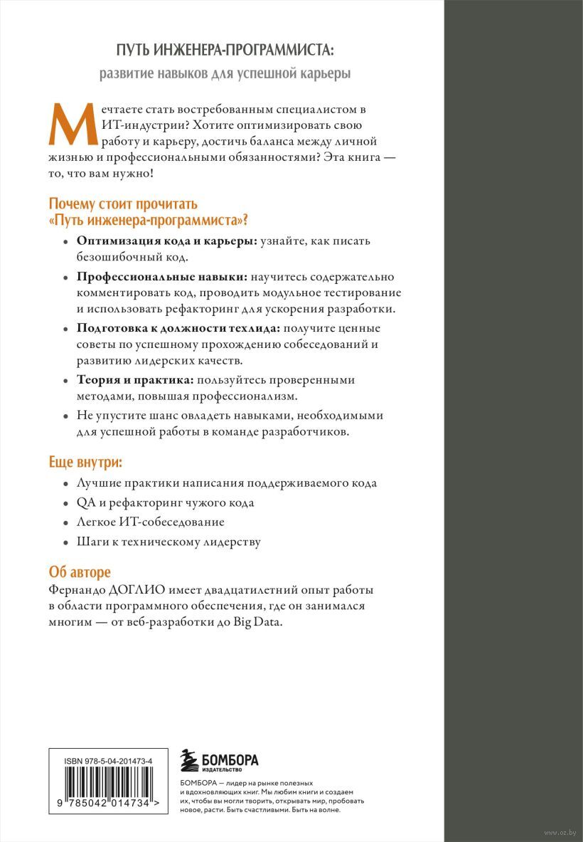 "Путь инженера-программиста" – это полезное руководство для всех, кто хочет построить успешную карьеру в сфере разработки программного обеспечения. Книга предлагает детальный план действий, начиная с получения базовых знаний и заканчивая достижением уровня профессионала, который способен формировать команды разработчиков и управлять проектами.