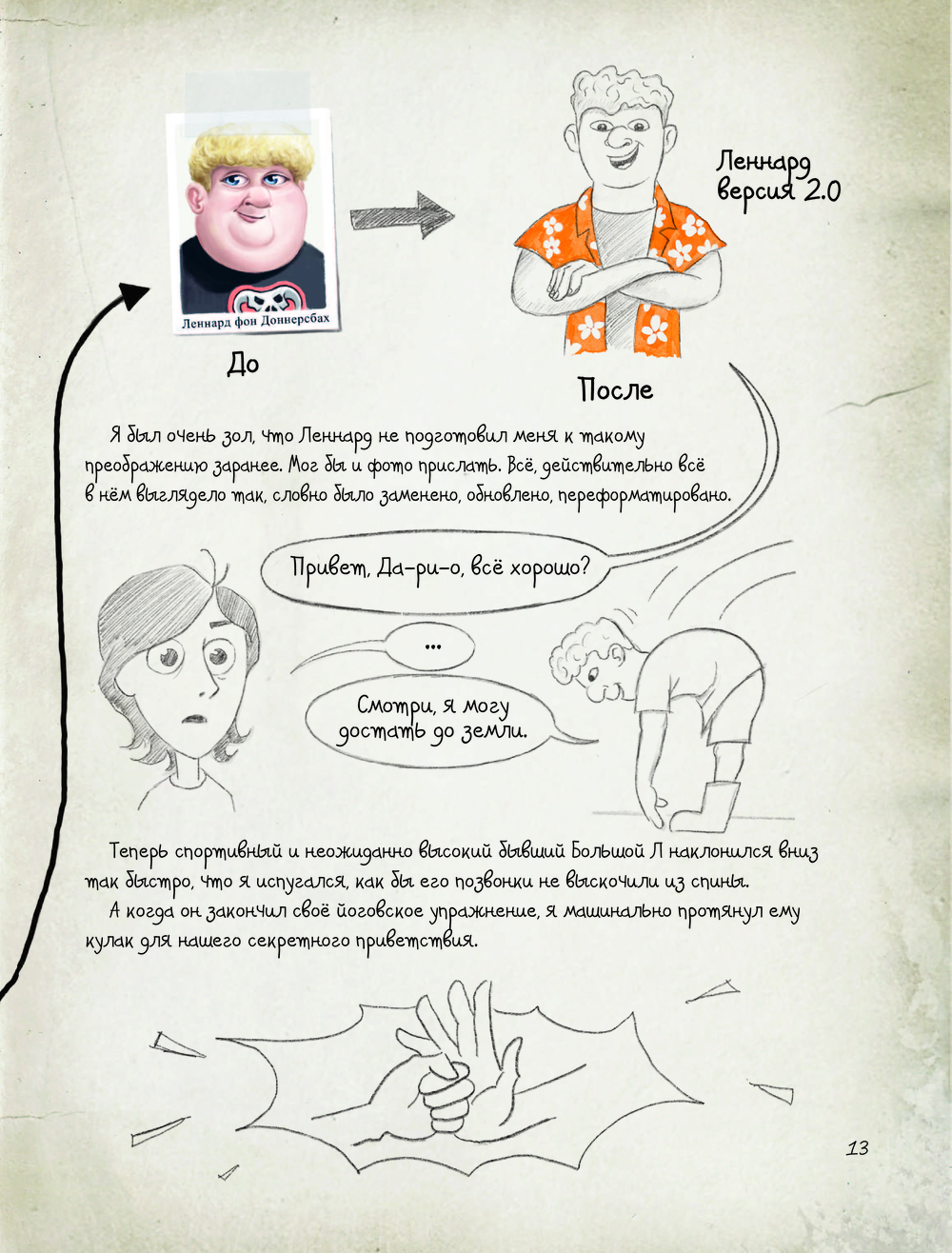 Представьте, что вы возвращаетесь в школу после летних каникул, а ваш лучший друг изменился. Просто совершенно другой. Именно это и происходит с Дарио – художником-комиксистом и настоящим ботаником – и его приятелем Леннардом. Дарио вместе с занудной и надоедливой сестрой Леннарда Кларой выясняет, что тот... (внимание, спойлер!) был похищен и обменян на гоблина! Поэтому герои отправляются на спасение Леннарда в параллельный мир вместе с гоблином Румпелем. А все свои приключения Дарио талантливо изобразил в этой книге! (Точнее, их изобразил Томас Гуссунг – иллюстратор знаменитой "Маленькой злой книги".) Скорее присоединяйтесь к Дарио в его непростой миссии!