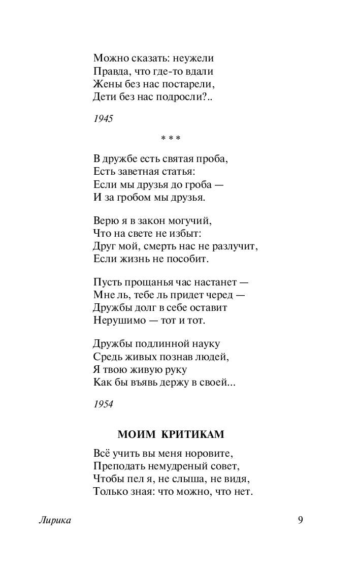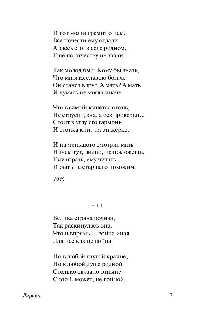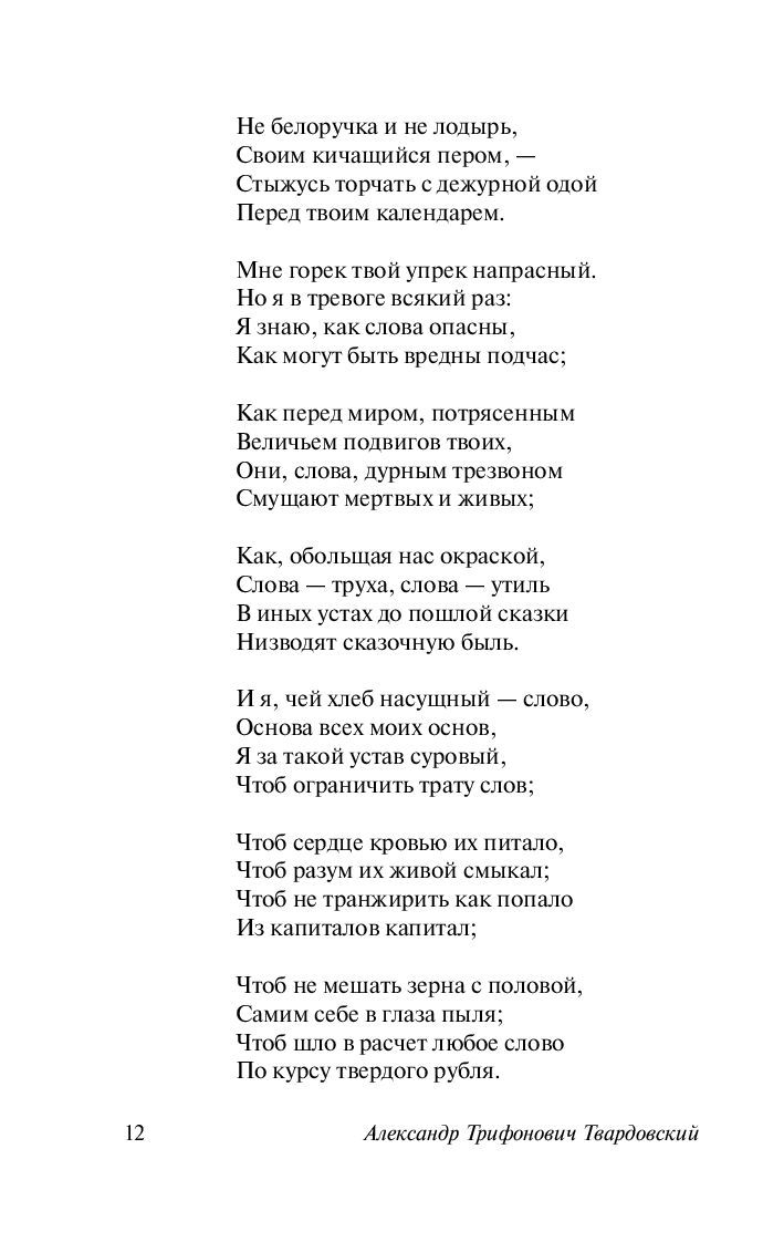 В сборник также вошли стихотворения разных лет – преимущественно поздняя лирика Твардовского, его осмысление жизни и творческого пути.