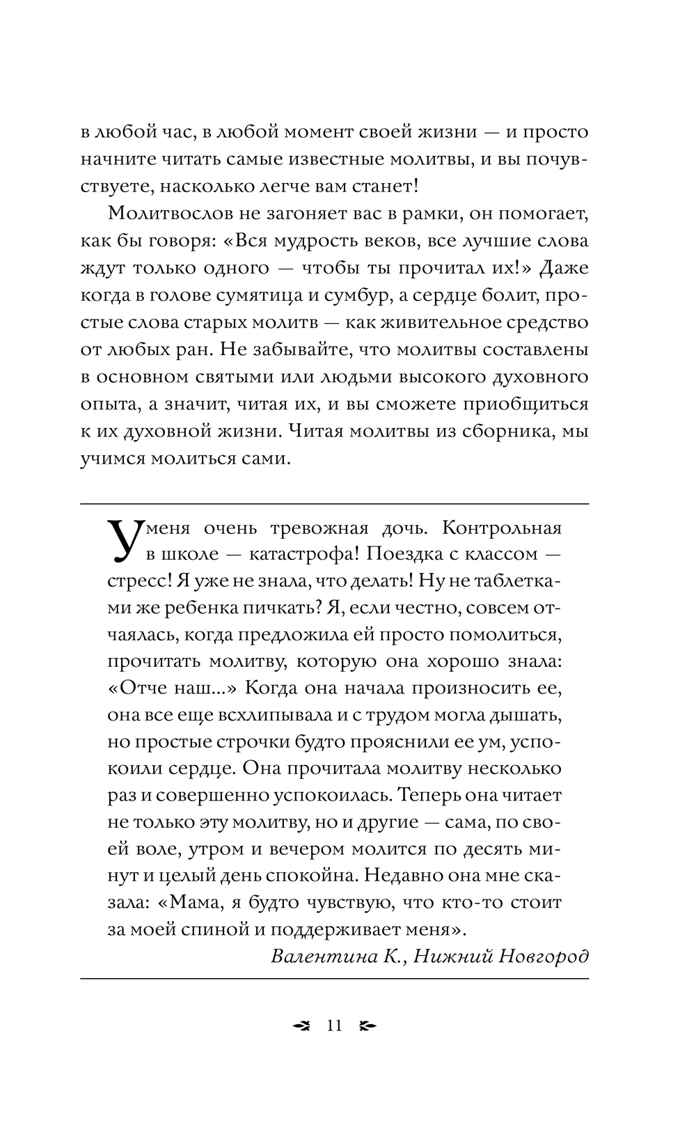 Ответы на такие вопросы вы найдете в этой книге. В ней не только собраны самые важные молитвы православным святым на все случаи жизни, но и подробно рассказано о правилах чтения молитв за себя и других, дома и в церкви, ежедневно и в особых ситуациях. В этом молитвослове также собраны истории людей – свидетельства чудес. Происходящих по молитвам Всевышнему и его святым угодникам. Пусть эти истории вдохновят вас и помогут вам найти свой путь к Богу.