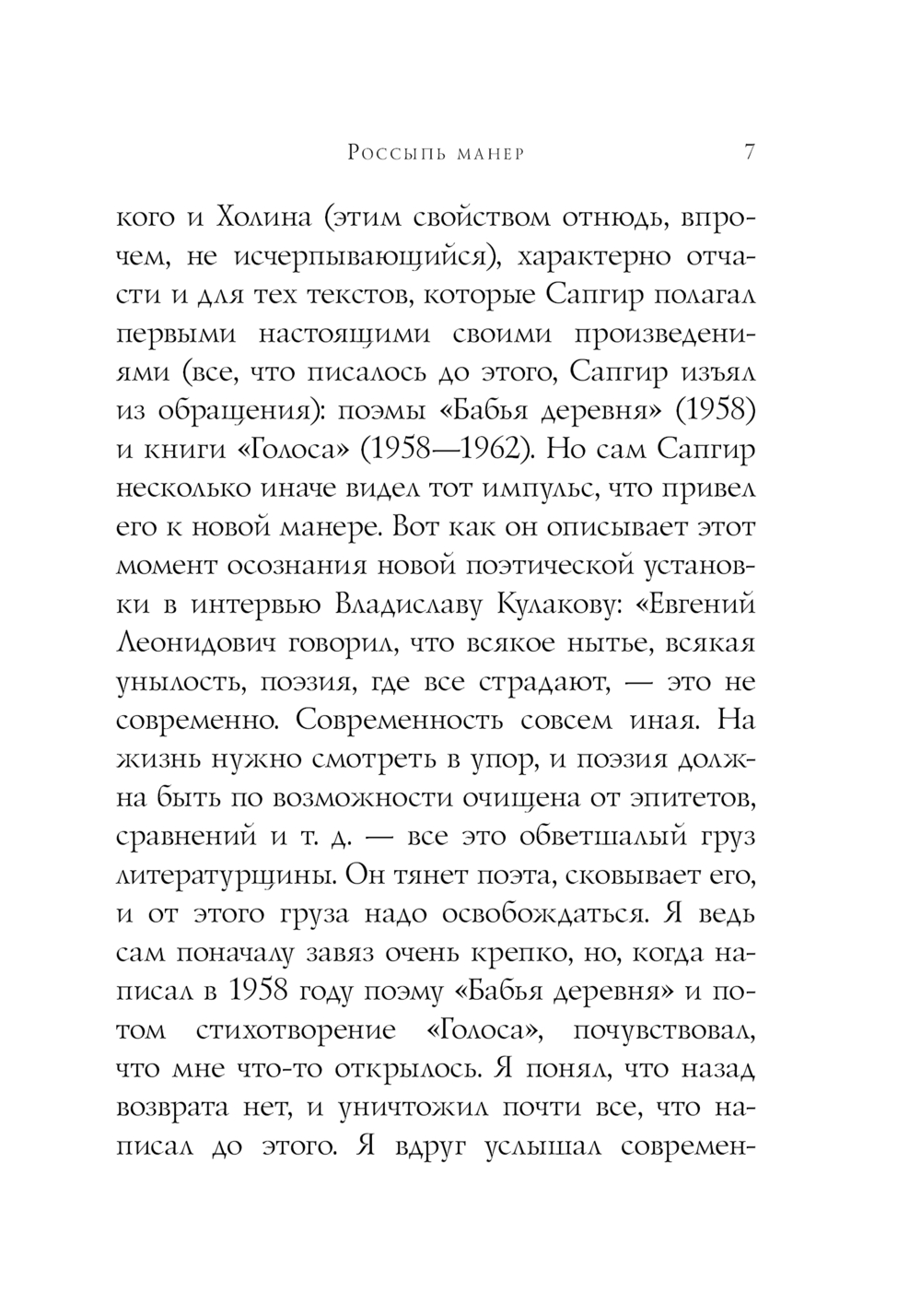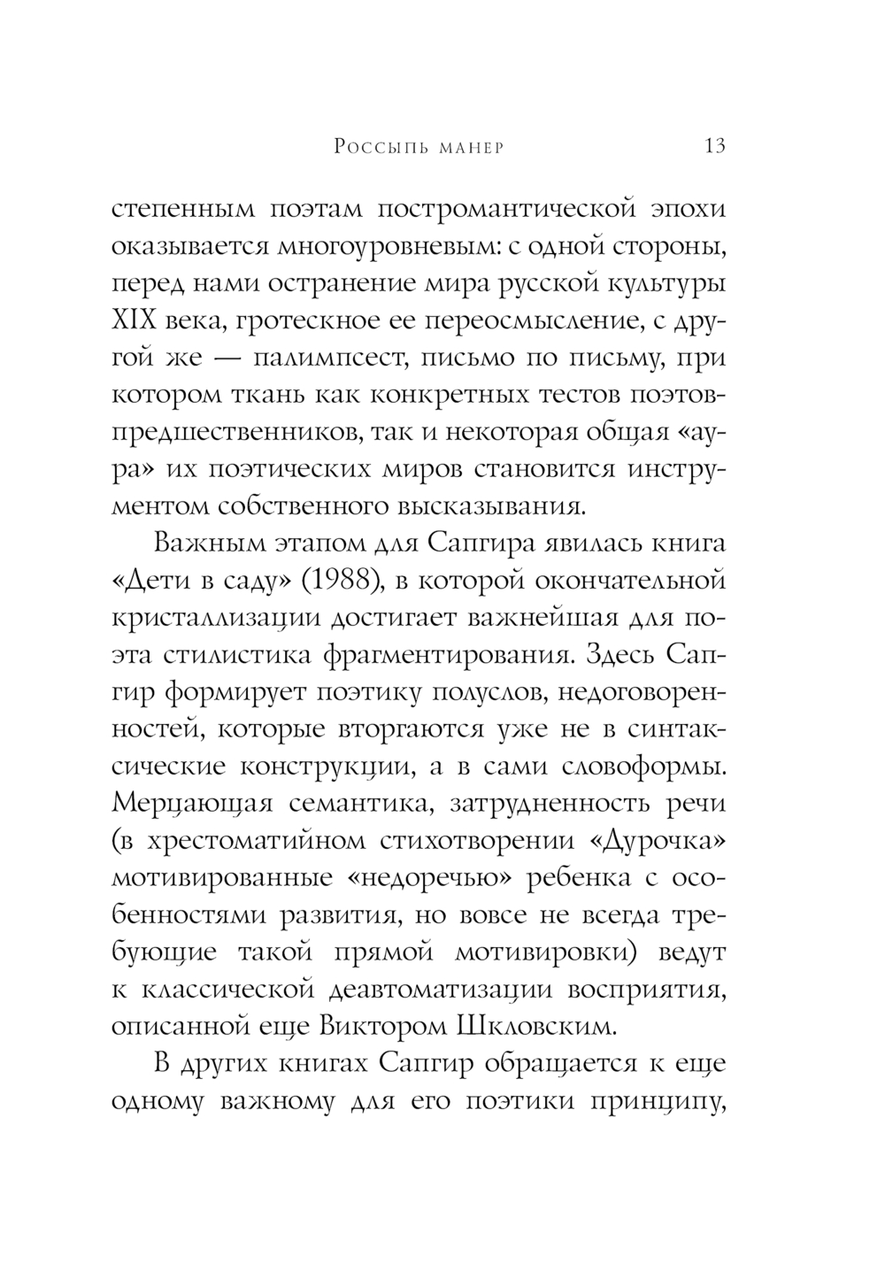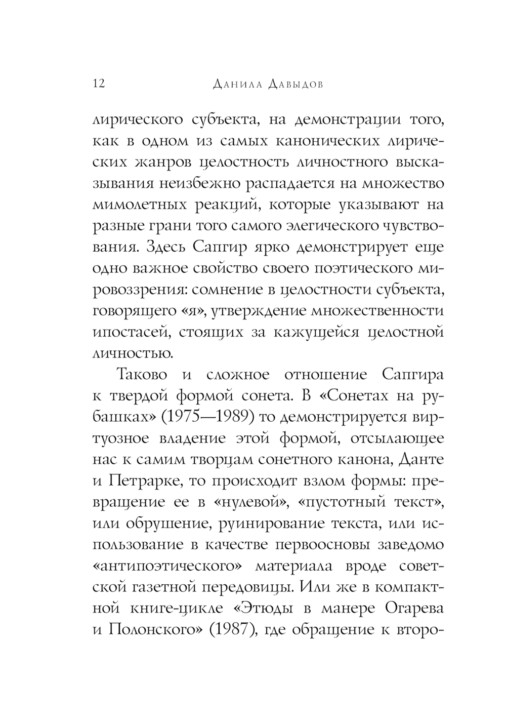 Сегодня, когда черта между искусством и жизнью стирается всё больше, сапгировские стихи прочитываются особенно актуально: странные и бесстрашные, они не вторят нашему веку, но закономерно отражают и продолжают его.
