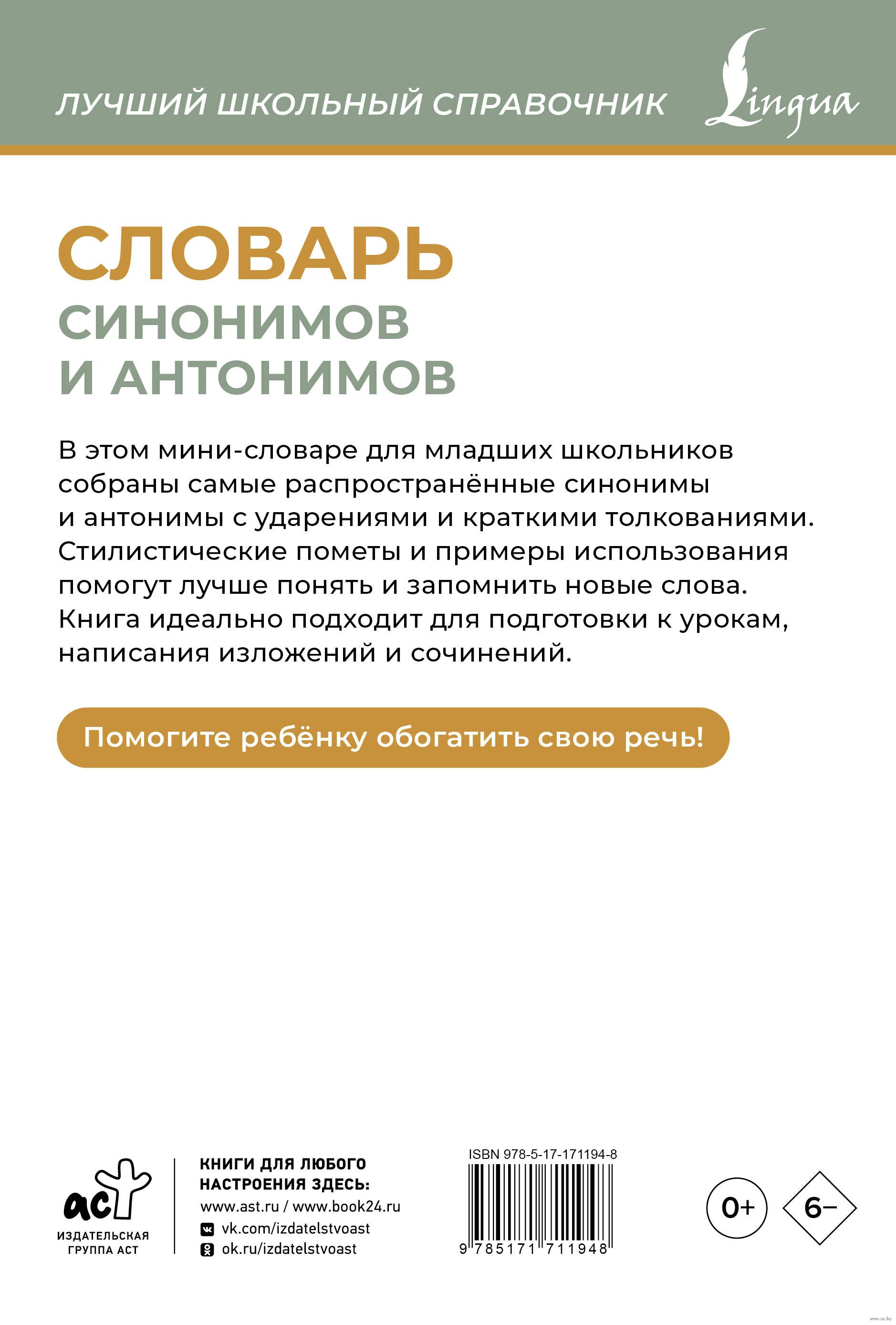 Этот мини-словарь содержит самые востребованные синонимы и антонимы современного русского языка, которые должны быть известны младшим школьникам.