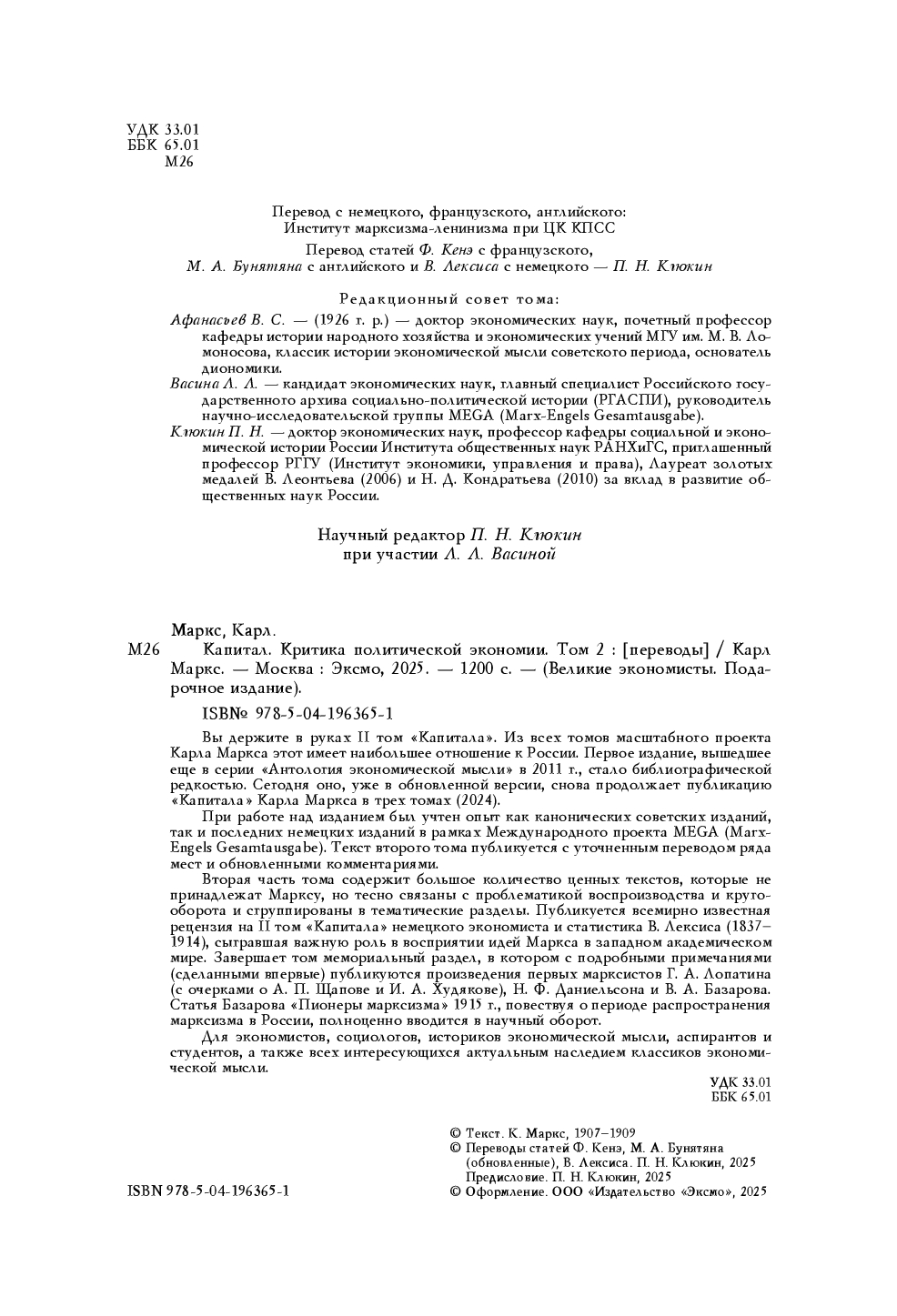 Вы держите в руках II том "Капитала". Из всех томов масштабного проекта Карла Маркса этот имеет наибольшее отношение к России. Первое издание, вышедшее еще в серии "Антология экономической мысли" в 2011 г., стало библиографической редкостью. Сегодня оно, уже в обновленной версии, снова продолжает публикацию "Капитала" Карла Маркса в трех томах (2024).