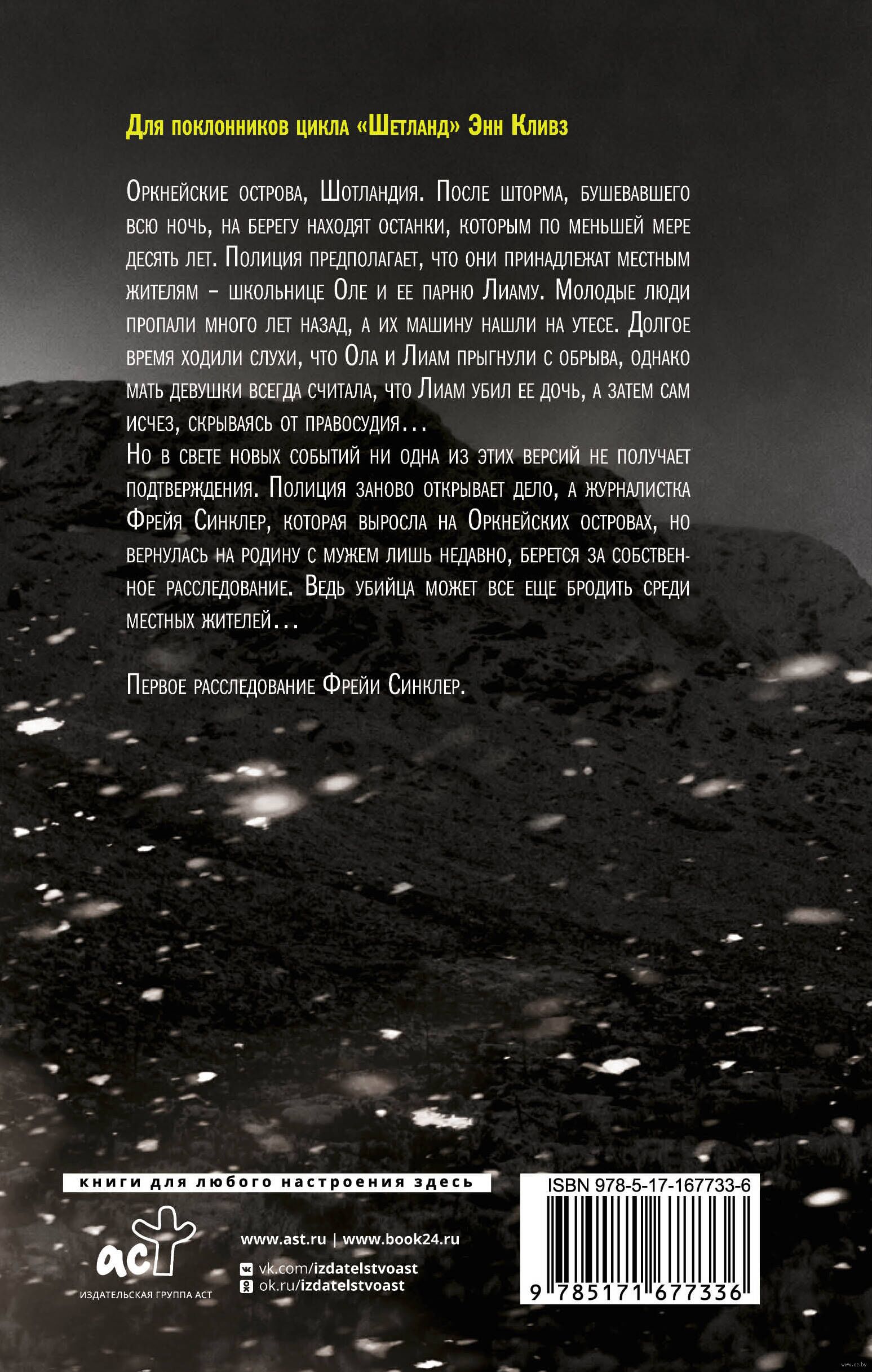 Но в свете новых событий ни одна из этих версий не получает подтверждения. Полиция заново открывает дело, а журналистка Фрейя Синклер, которая выросла на Оркнейских островах, но вернулась на родину с мужем лишь недавно, берется за собственное расследование. Ведь убийца может все еще бродить среди местных жителей...