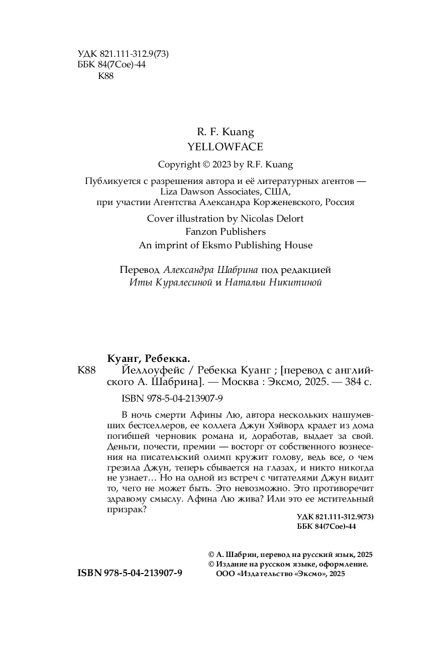 В ночь смерти Афины Лю, автора нескольких нашумевших бестселлеров, ее коллега Джун Хэйворд крадет из дома погибшей черновик романа и, доработав, выдает за свой. Деньги, почести, премии – восторг от собственного вознесения на писательский Олимп кружит голову, ведь все, о чем грезила Джун, теперь сбывается на глазах, и никто никогда не узнает...