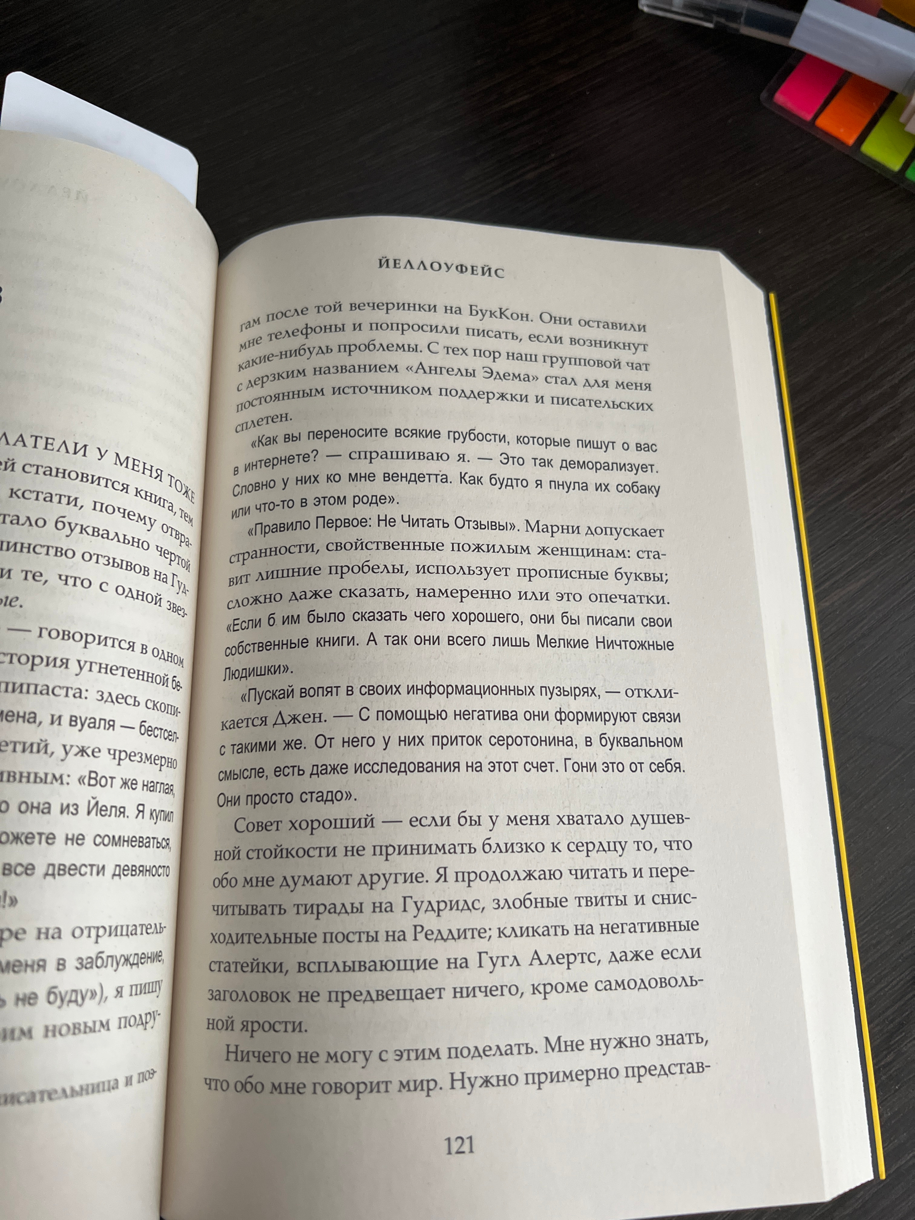 Плюсы: Обложка мягкая, корешок не ломается. Перевод новый, без старых «сунь-хунь-вчай» и «ноутбуков Молескин». Озу также спасибо за доступность) Из минусов: бумага тонковата и редактор по ощущениям в глаза долбится, шрифт Arial для акцента смотрится дешево и вычурно.