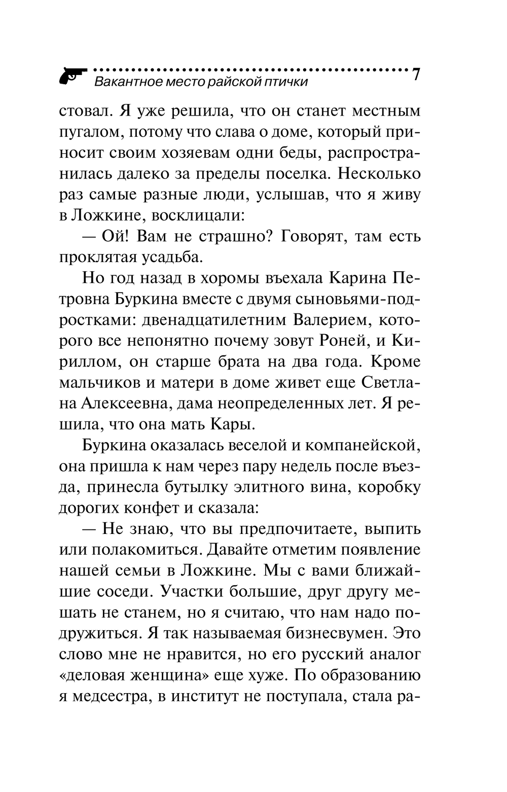 Даша Васильева не боится черных кошек, не опасается цифры тринадцать, любит понедельники и не верит в проклятые дома. Но особняк, который соседствует с ее коттеджем, на самом деле несчастливый. В нем постоянно меняются хозяева и со всеми произошло нечто нехорошее.