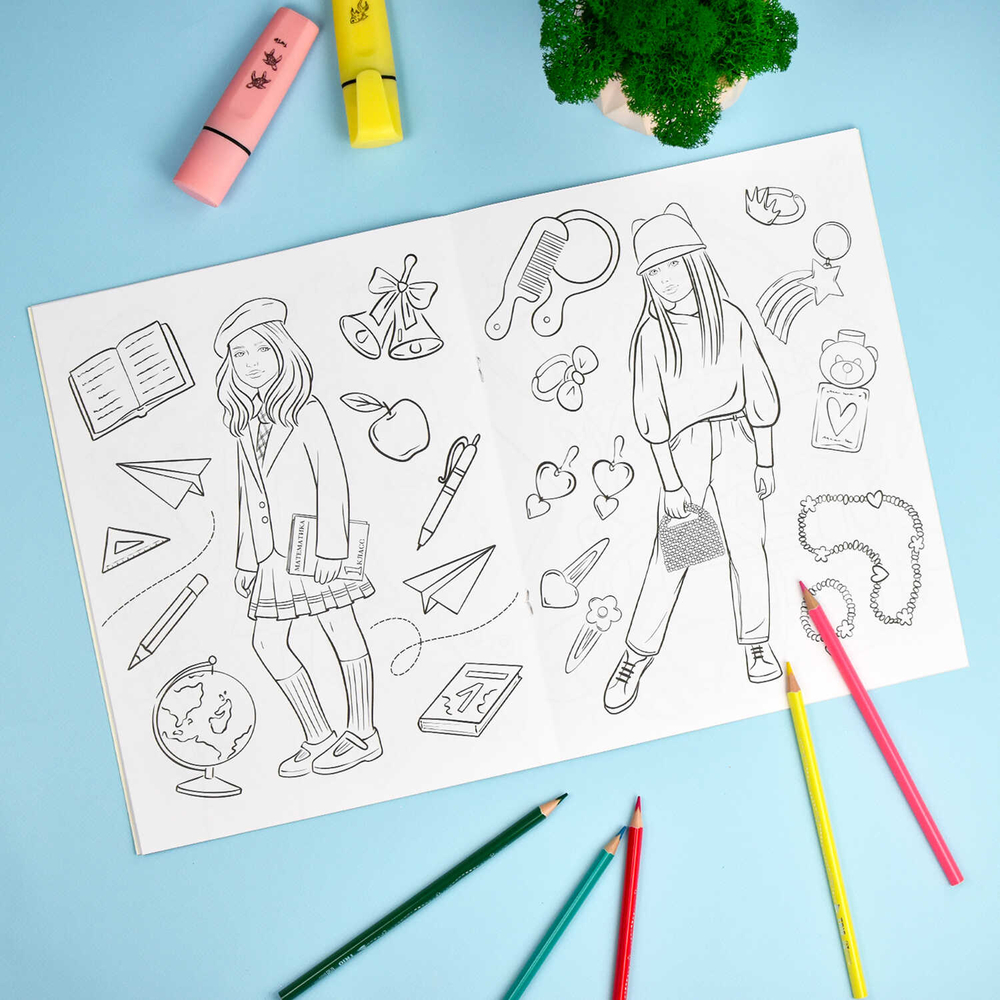 Мы собрали 16 стильных образов для модных девчонок. Раскрашивай стильные образы и вдохновляйся, собираясь на прогулку, в кафе, в парк аттракционов. Будь яркой и заметной!