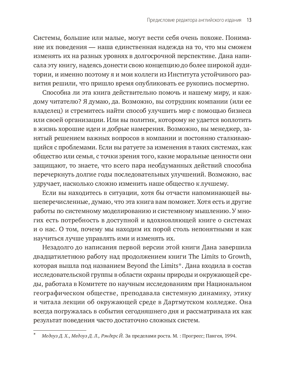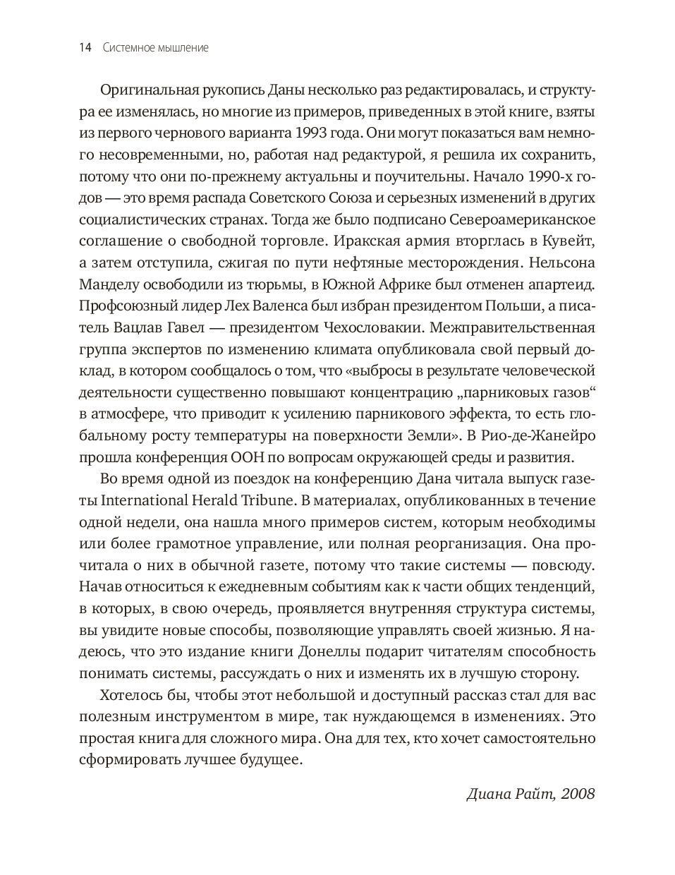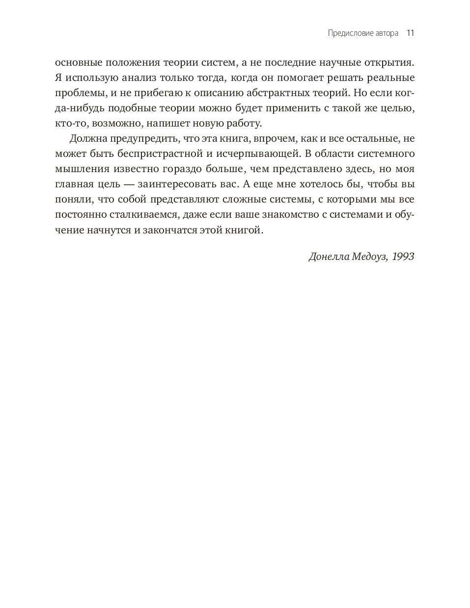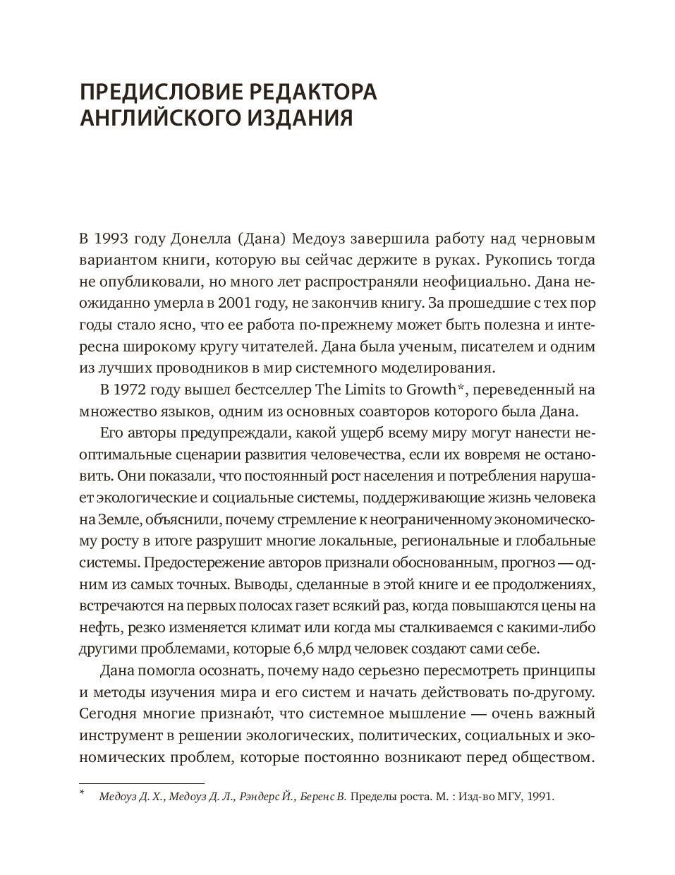 У этой книги удивительная история: Донелла Медоуз написала ее еще в 1990-х, но так и не отдала в печать. Ее труд долгое время распространялся неофициально, а после издания стал бестселлером – настолько точным и проницательным оказался. Потому что есть вещи, которые не меняются. Работа систем – одна из них.
