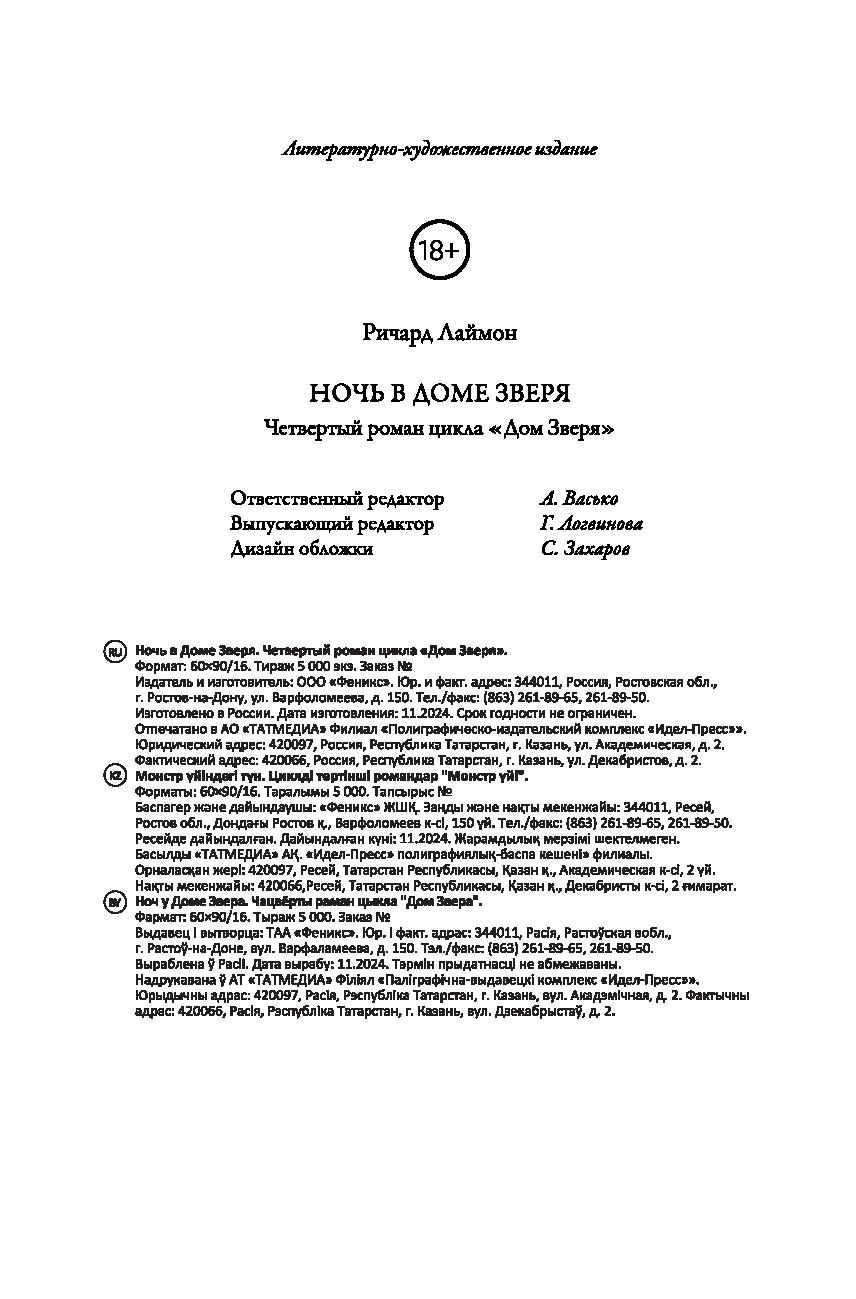 | Изготовитель | ЗАО "Издательство "Феникс". 190000, РФ, г. Санкт-Петербург, пер. Антоненко, 2 |