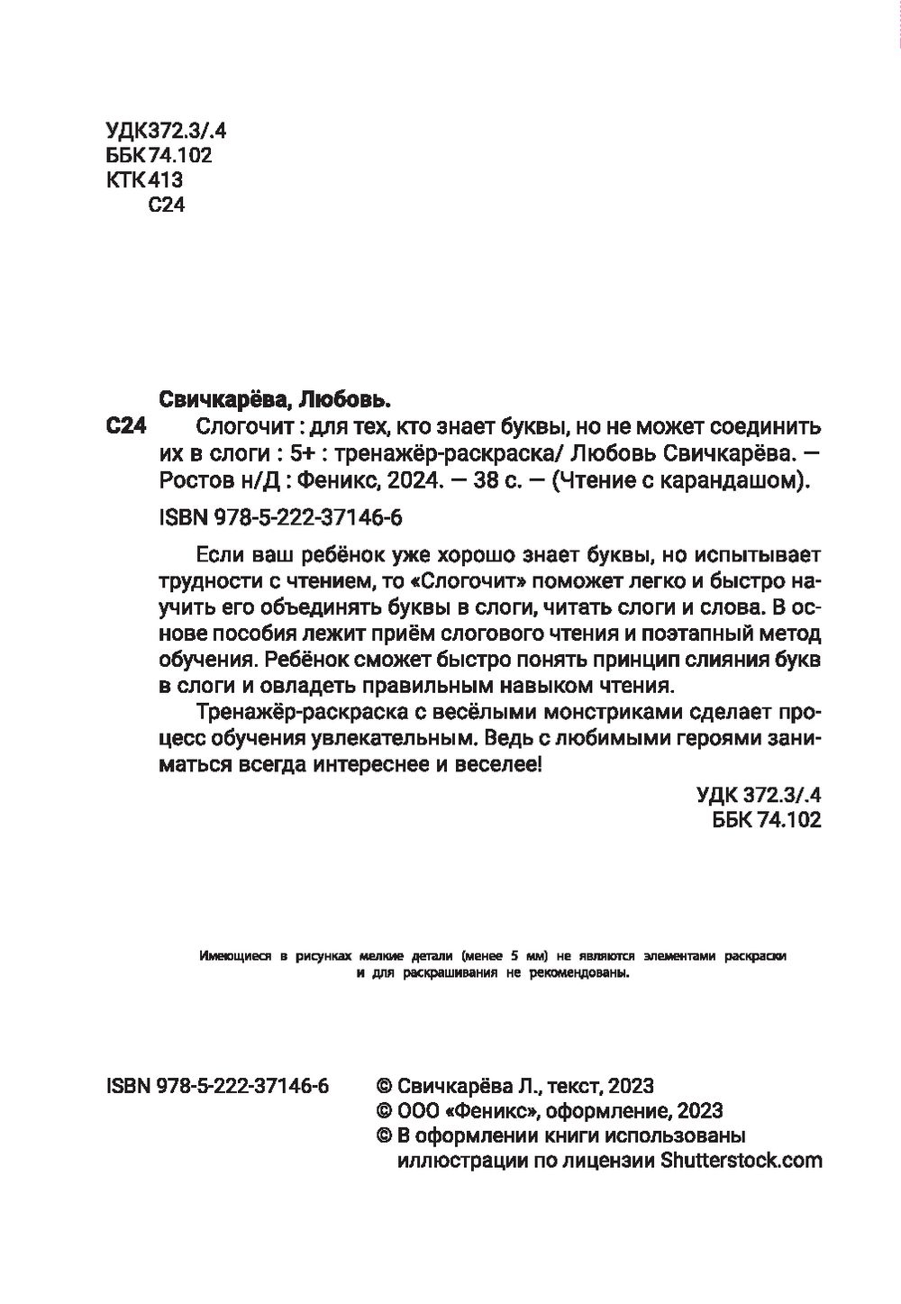 Если ваш ребёнок уже хорошо знает буквы, но испытывает трудности с чтением, то "Слогочит" поможет легко и быстро научить его объединять буквы в слоги, читать слоги и слова. В основе пособия лежит приём слогового чтения и поэтапный метод обучения. Ребёнок сможет быстро понять принцип слияния букв в слоги и овладеть правильным навыком чтения.