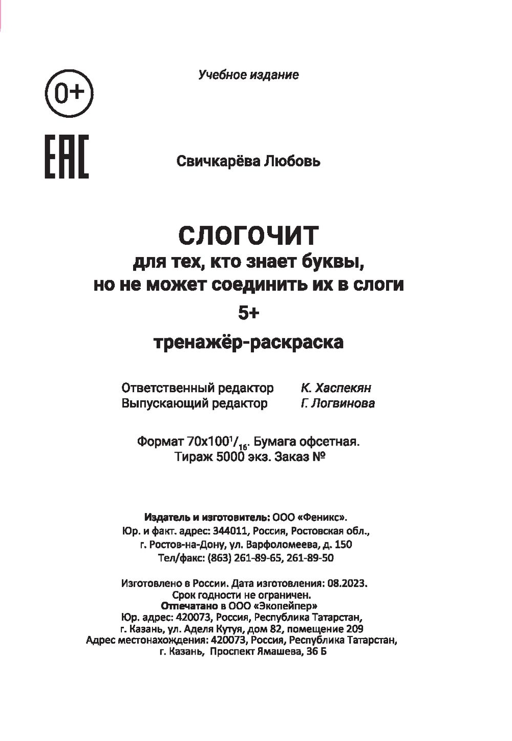 | Изготовитель | ЗАО "Издательство "Феникс". 190000, РФ, г. Санкт-Петербург, пер. Антоненко, 2 |