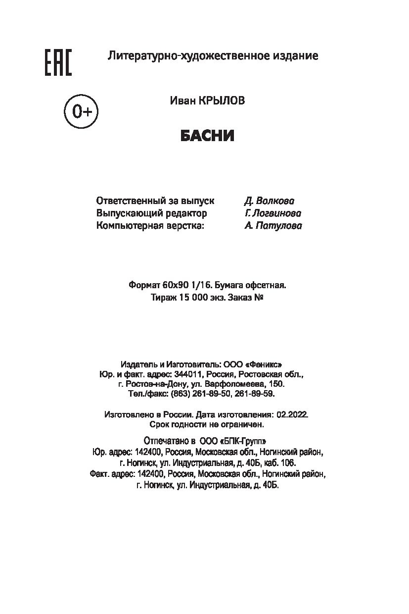 | Изготовитель | ЗАО "Издательство "Феникс". 190000, РФ, г. Санкт-Петербург, пер. Антоненко, 2 |