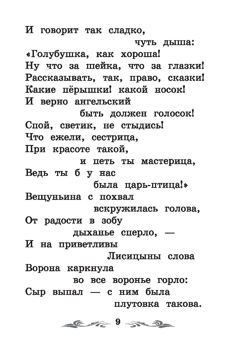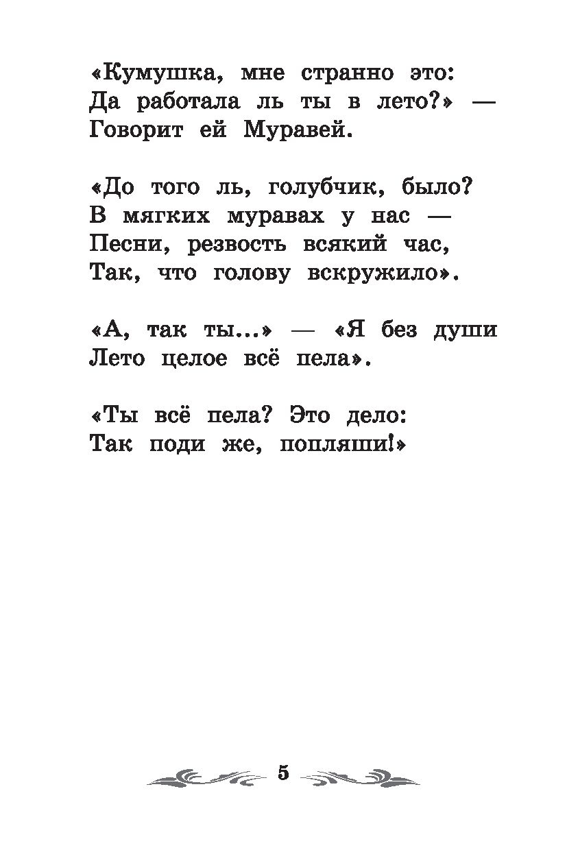 И. А. Крылов был известнейшим баснописцем отечественной литературы, за всю свою жизнь он написал более 200 басен, самые известные из них "Лебедь, Щука и Рак", "Стрекоза и Муравей", "Квартет", "Ворона и Лисица". Автор, словно мимоходом, остроумными намеками высмеивает человеческие недостатки: гордость, эгоизм, тщеславие, глупость. Многие строки басен И.А. Крылова стали пословицами и крылатыми выражениями: "А вы, друзья, как ни садитесь, всё в музыканты не годитесь", "Спой, светик, не стыдись!", "У сильного всегда бессильный виноват", "Кукушка хвалит петуха за то, что хвалит он кукушку" и многие другие.