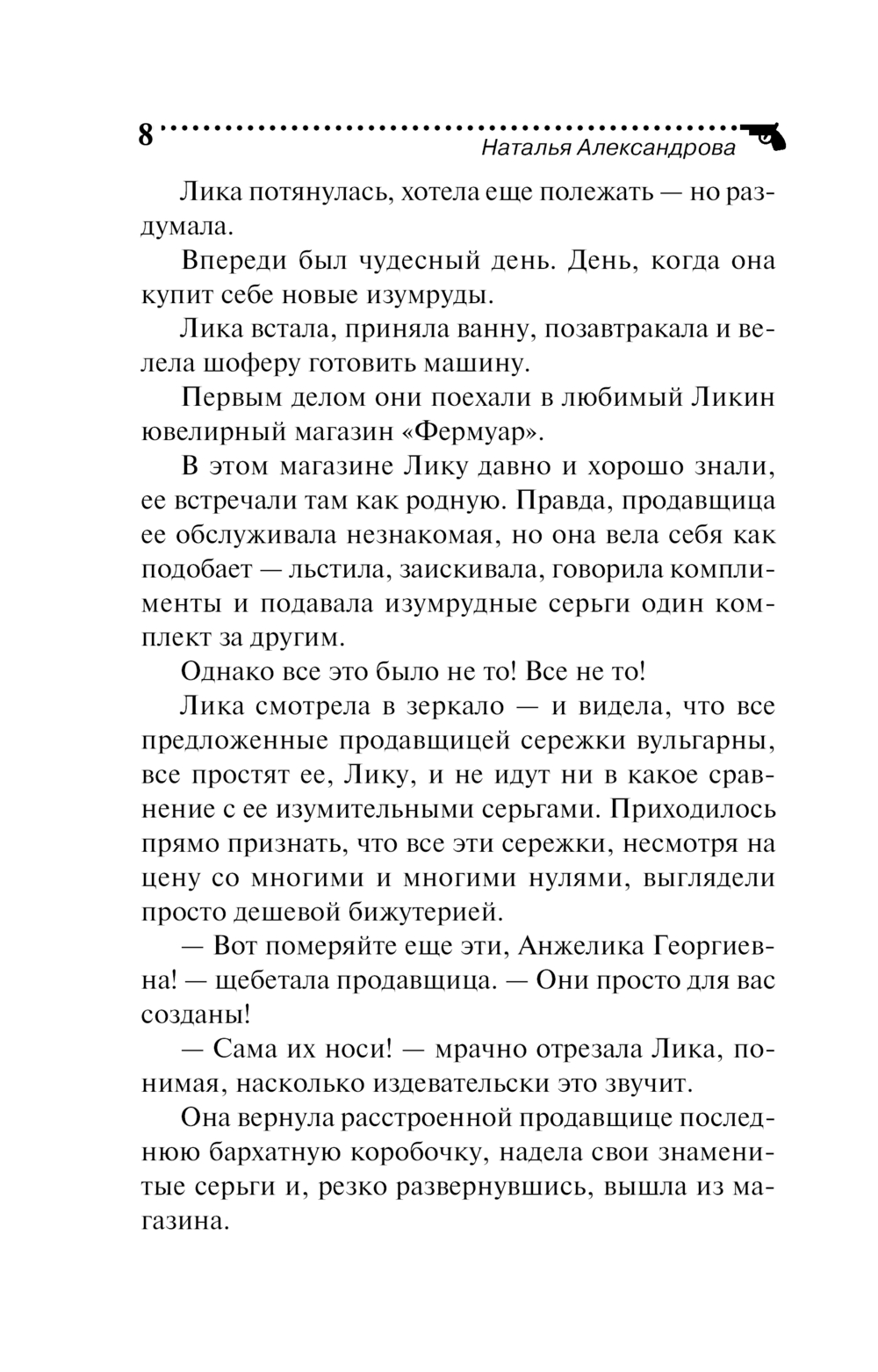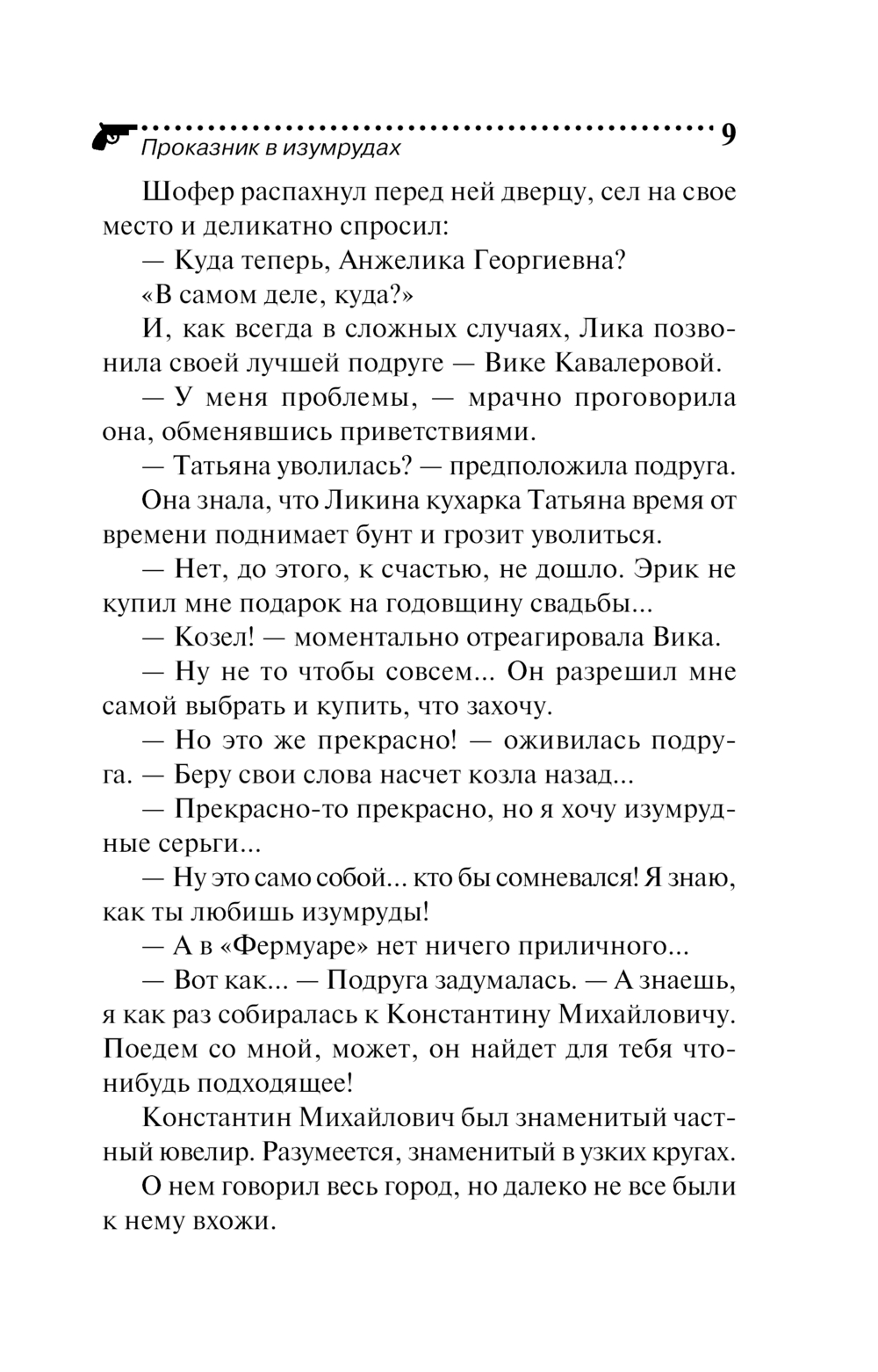 Профессиональный авантюрист Леня Маркиз в этот раз решил все сделать сам и не привлекать к заданию помощницу Лолу, которая в последнее время была сама не своя. У Анжелики Володарской, жены известного бизнесмена, в ювелирном магазине украли роскошные серьги с изумрудами. Это украшение имело огромную историческую ценность, и теперь Маркизу надо обязательно разобраться, кто же на него покусился.