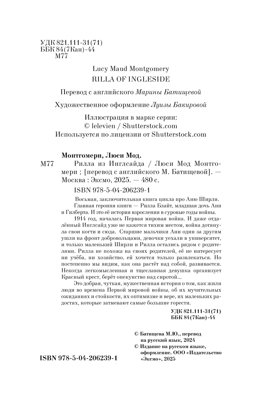 Главная героиня книги Рилла Блайт, младшая дочь Ани и Гилберта. И это её история взросления в суровые годы войны.