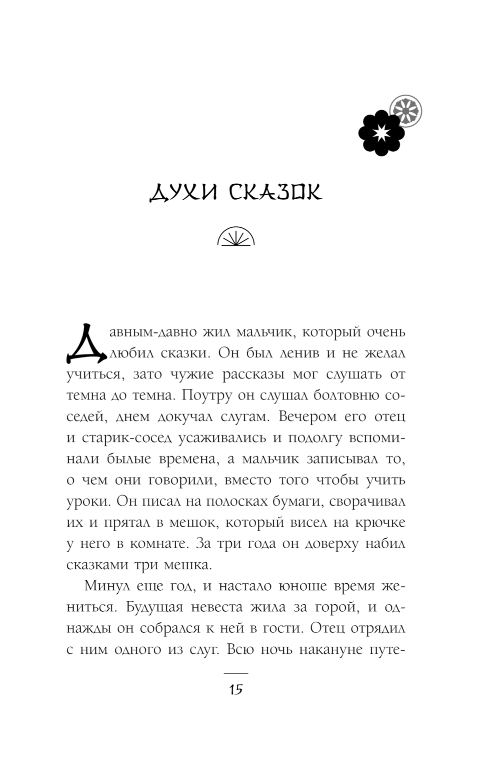 "...Давным-давно жил мальчик, который очень любил сказки. Он был ленив и не желал учиться, зато чужие рассказы мог слушать от темна до темна".