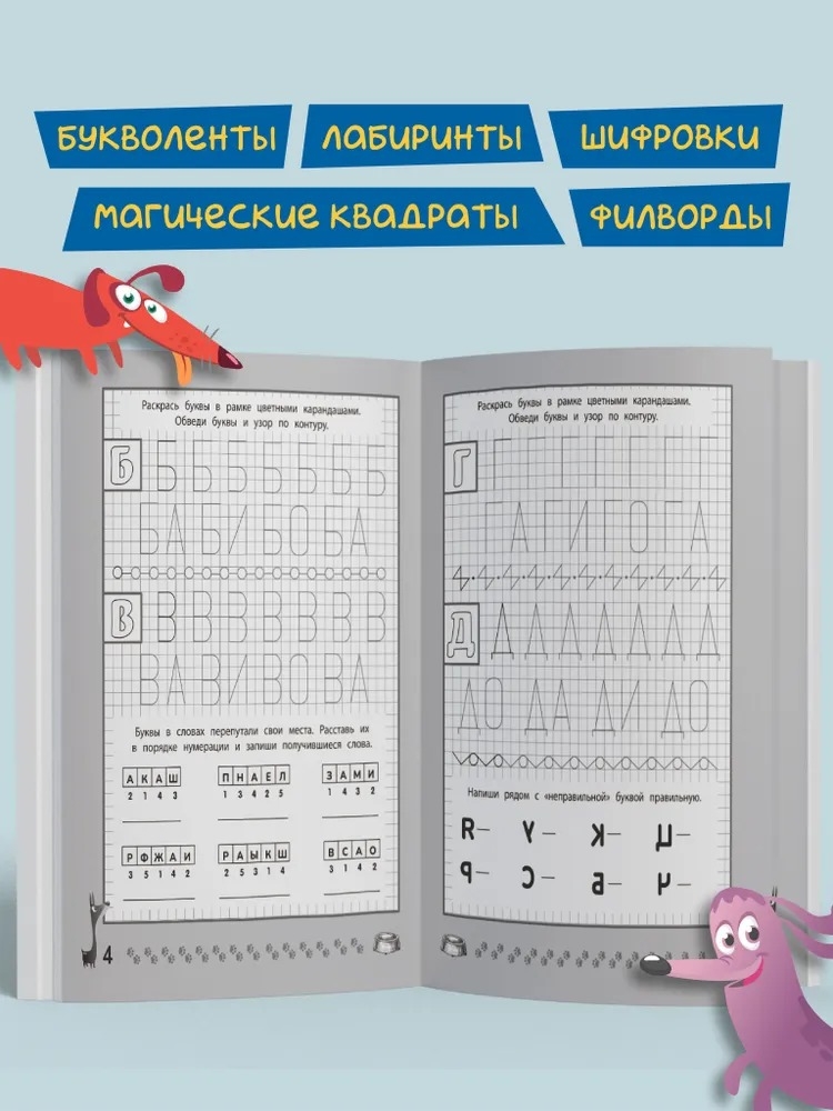 В книге приведены разнообразные виды заданий, которые так любят дети: магические квадраты, букволенты, шифровки, лабиринты, филворды и многое другое. Они делают процесс обучения приятным и увлекательным и направлены на развитие внимания, логики, фантазии, зрительного восприятия.