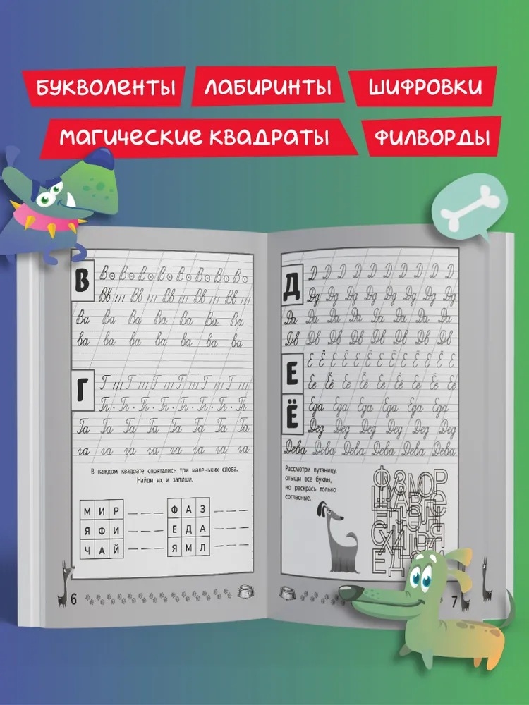 В книге приведены разнообразные виды заданий, которые так любят дети: магические квадраты, букволенты, шифровки, лабиринты, филворды и многое другое. Они делают процесс обучения приятным и увлекательным и направлены на развитие внимания, логики, фантазии, зрительного восприятия.