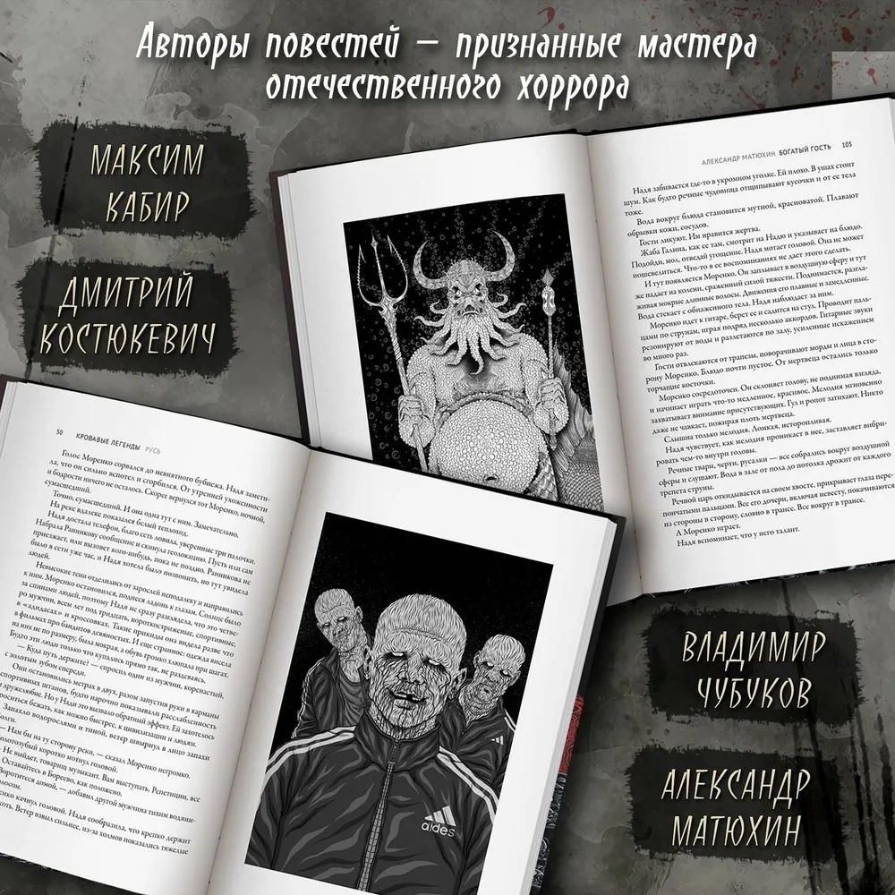 Четверо признанных мастеров отечественного хоррора объединились для создания этой антологии, которая заставит вас вспомнить, что есть легенды куда более страшные, чем истории о Кровавой Мэри, Бугимене или Слендере. В основу книги легли славянские легенды об упырях, русалках, вештицах и былина "Садко".