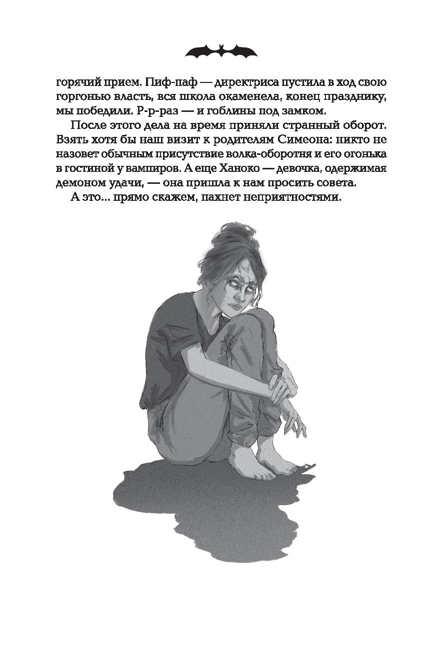 Добро пожаловать вновь в удивительный мир, разделенный на Полдень и Полночь. Отдыхать Симеону и его компании пришлось недолго, ведь их поджидают новые, еще более захватывающие и опасные приключения. К нашим друзьям обращается за помощью их загадочная и пугающая одноклассница Ханоко. Ее персональный демон удачи, находящийся в заточении, стремится вырваться на свободу. Если он сможет попасть в Полночь, его силы невероятно возрастут и обитатели обоих миров окажутся в опасности. Что ж, для вампира Симеона, оборотня Эйр, великанши Прюн, лича Жоэля и сирена Колена есть новая работенка. Им придется объединить усилия и совершить невозможное, чтобы спасти Полночную школу.