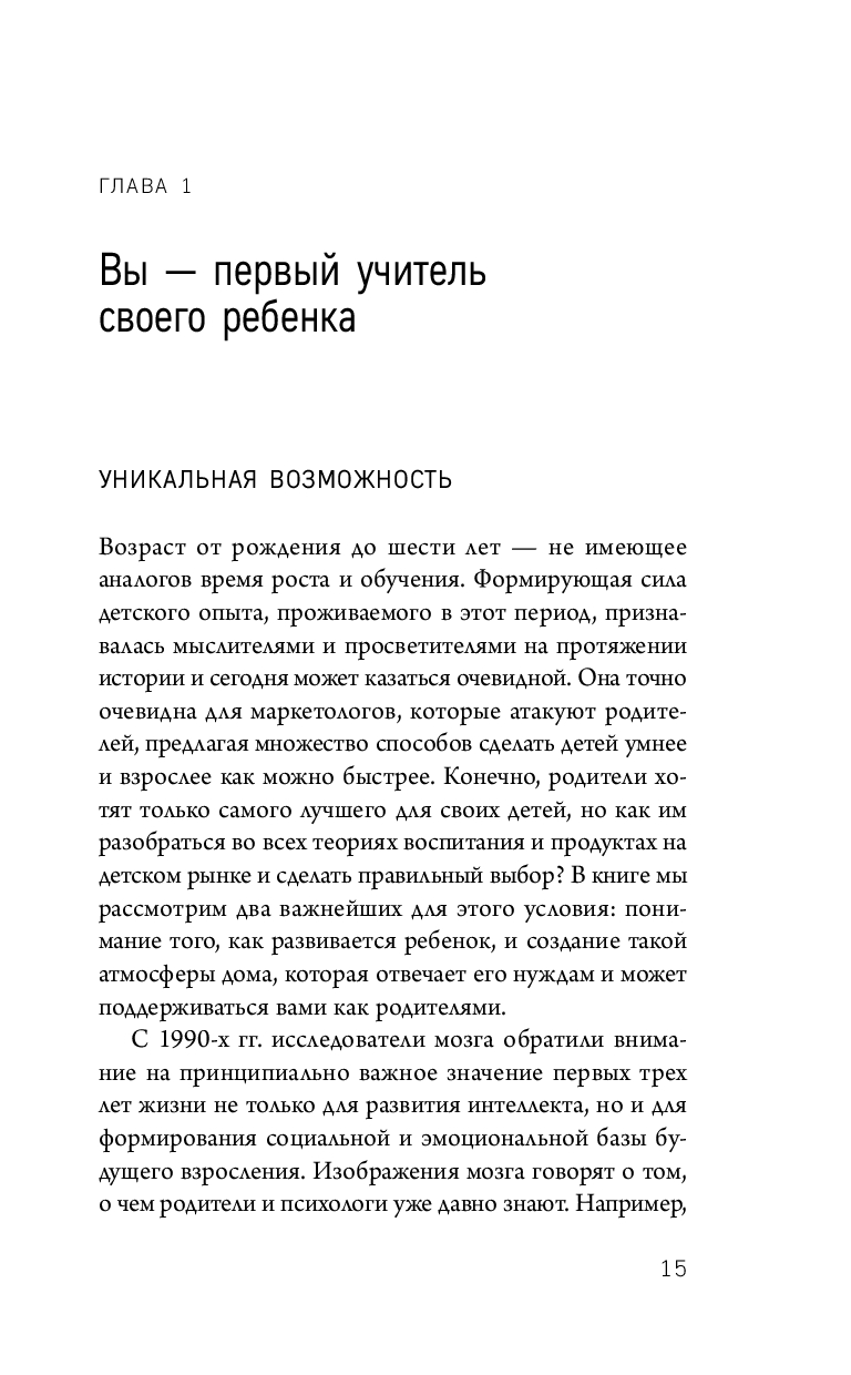Не нужно опережать взросление, обучая в три года математике и чтению – дети и так будут этим интересоваться, когда придет время. В ранние годы главное не только развитие интеллекта, но и личности, о чем современная система образования забывает. Привлекая маленького ребенка к своим повседневным делам, вы дадите ему лучшее развитие, чем кружки и особенные программы для вундеркиндов.