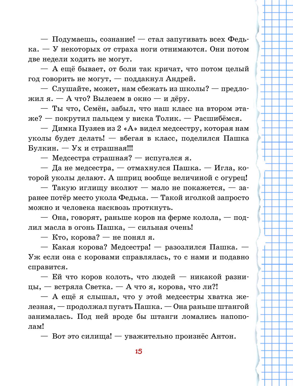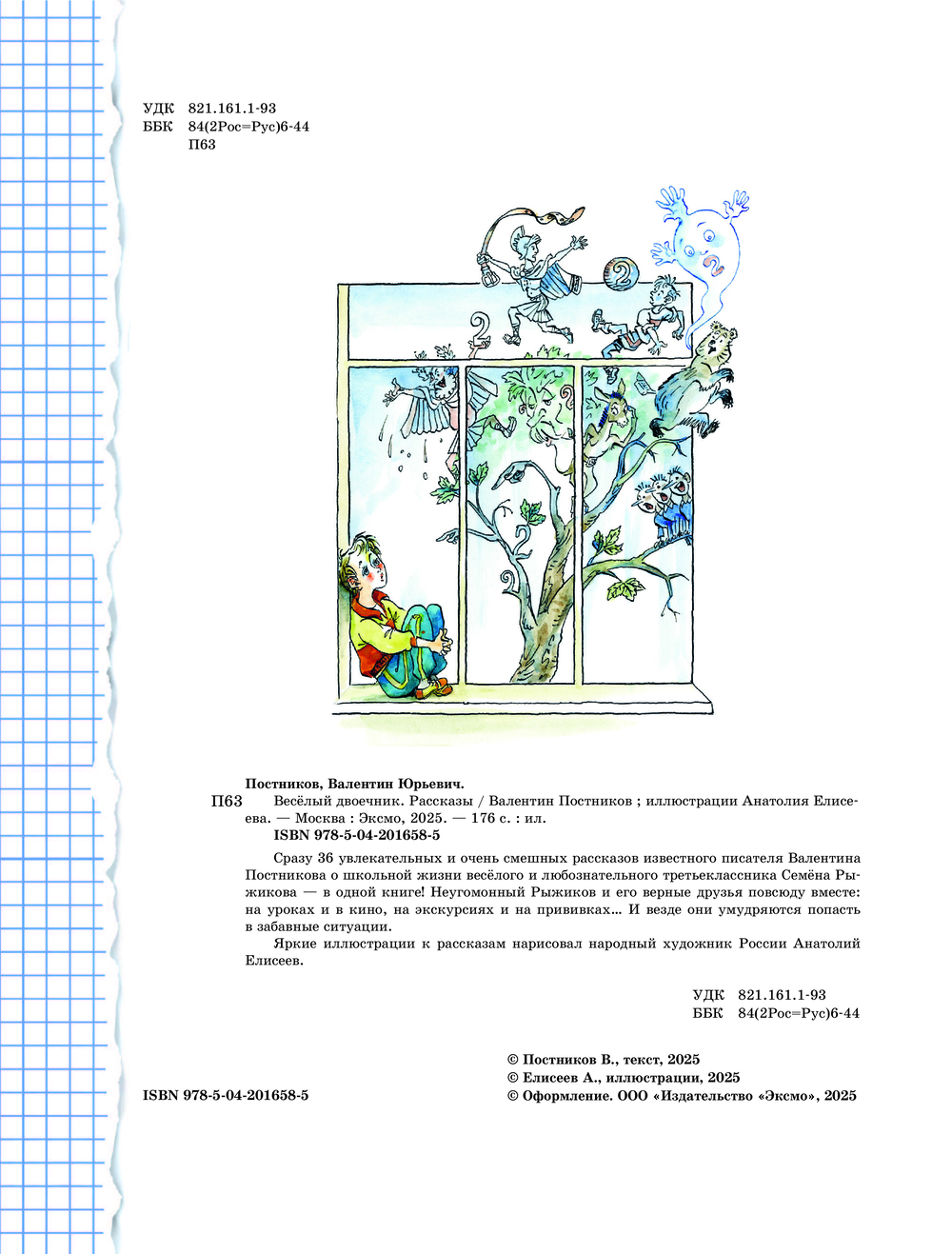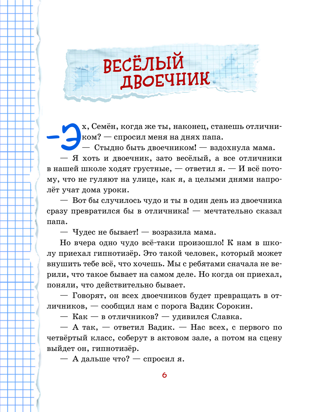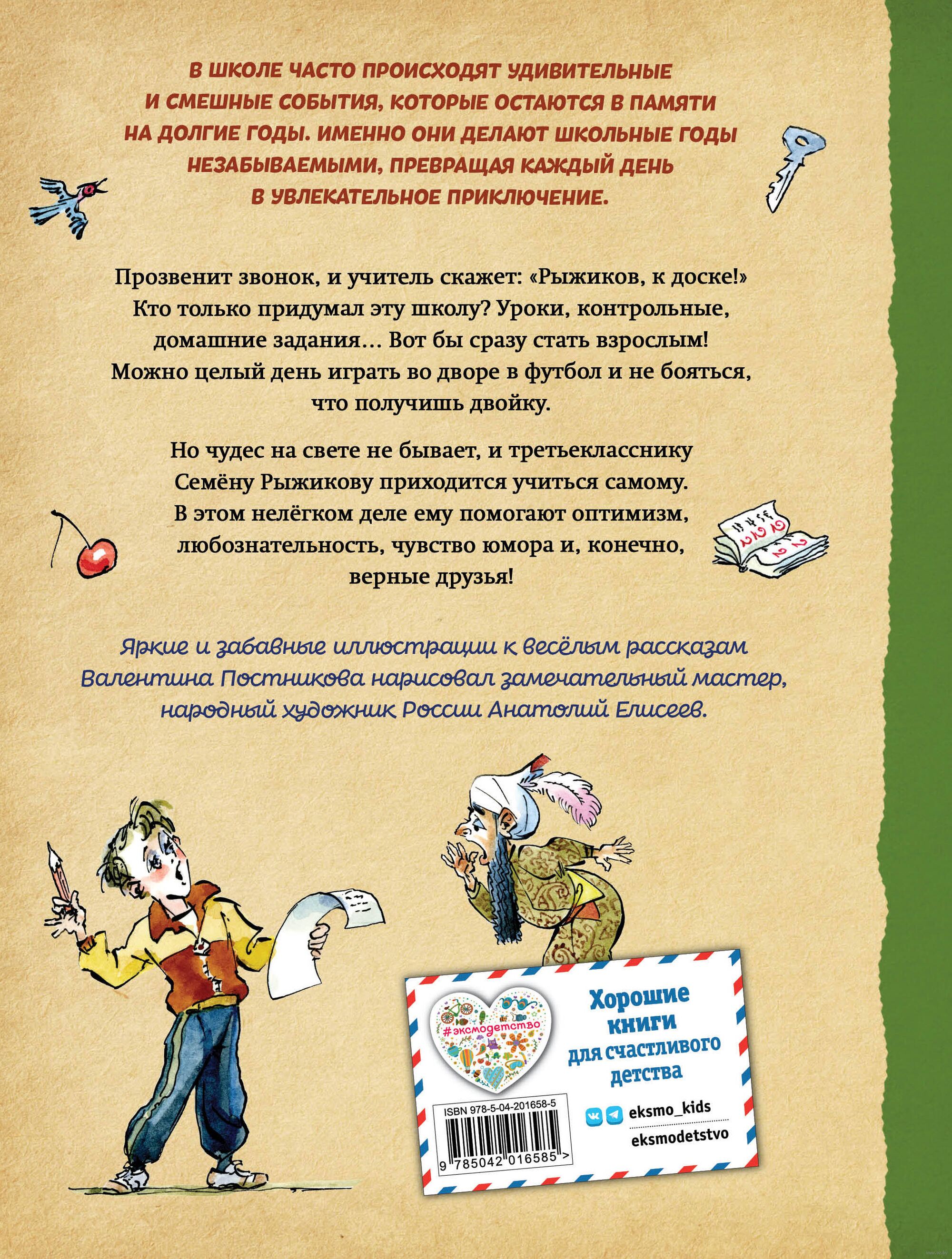 Сразу 36 увлекательных и очень смешных рассказов известного писателя Валентина Постникова о школьной жизни весёлого и любознательного третьеклассника Семёна Рыжикова – в одной книге! Неугомонный Рыжиков и его верные друзья повсюду вместе: на уроках и в кино, на экскурсиях и на прививках... И везде они умудряются попасть в забавные ситуации.