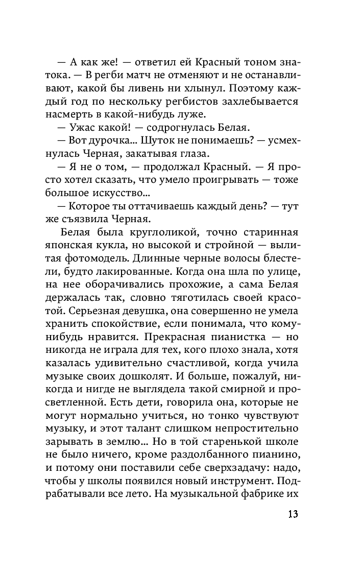 Они были всегда неразлучны. Красный, Синий, Белая, Черная и бесцветный Цкуру. На втором курсе университета что-то произошло. Четверка друзей оборвала все связи с Цкуру и больше не желала его видеть. С тех пор в его душе кровоточит рана, Белая и Черная периодически являются в эротических снах, а в жизни радует только работа.
