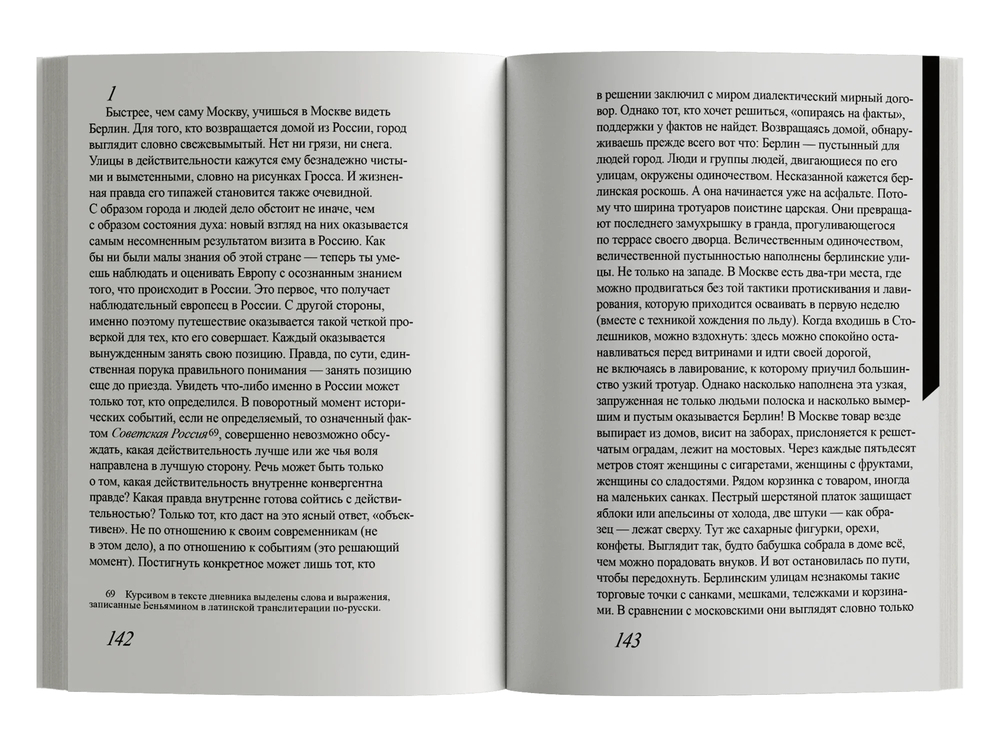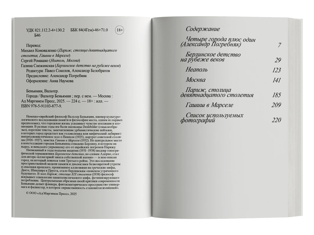 Немецко-еврейский философ Вальтер Беньямин, пионер культурологического исследования памяти и философии места, одним из первых предположил, что городская жизнь усиливает чувство изоляции и атомизации. В разные годы им были написаны Denkbilder ("мыслеобразы"), короткие тексты, запечатлевшие урбанистические пейзажи, в которых город предстает как головоломка или мифический лабиринт: импрессионистическое эссе о Неаполе (1925), портрет советской столицы (1926-1927), заметка "Гашиш в Марселе" (1932). Но центральное место в констелляции городов Беньямина отведено Берлину, в котором он вырос, и ненадолго укрывшему его от еврейских погромов Парижу.