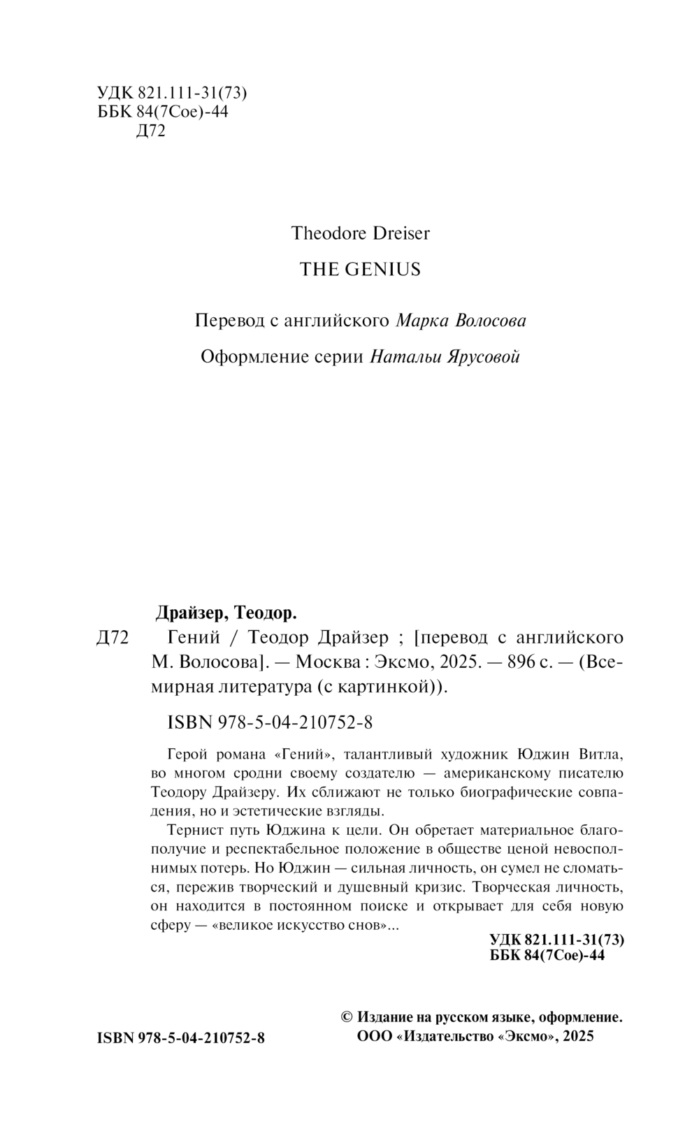 Герой романа "Гений", талантливый художник Юджин Витла, во многом сродни своему создателю – американскому писателю Теодору Драйзеру. Их сближают не только биографические совпадения, но и эстетические взгляды.