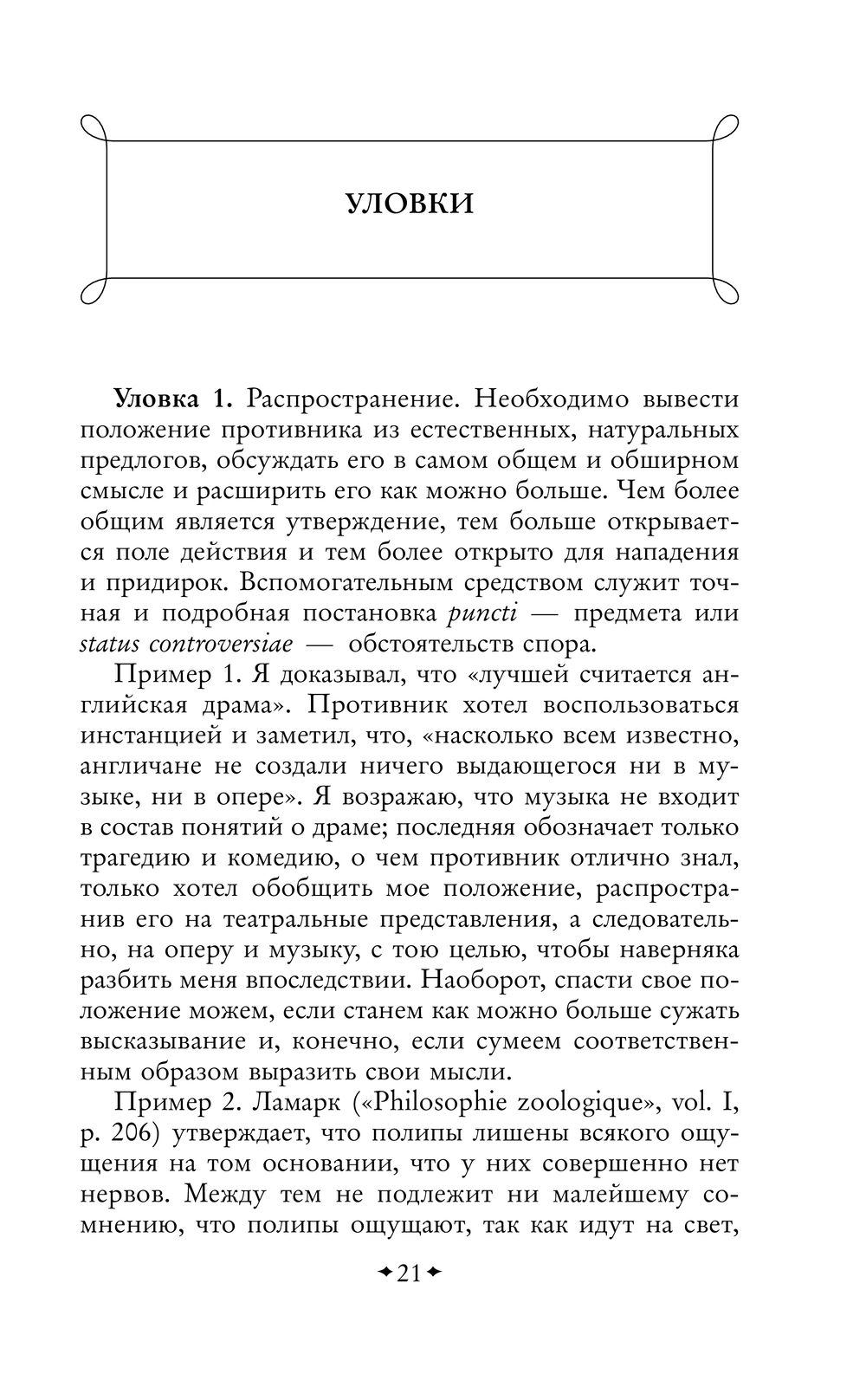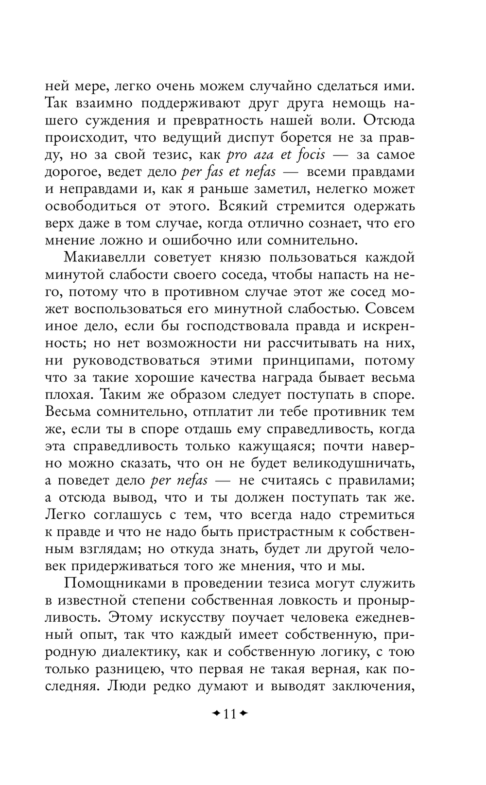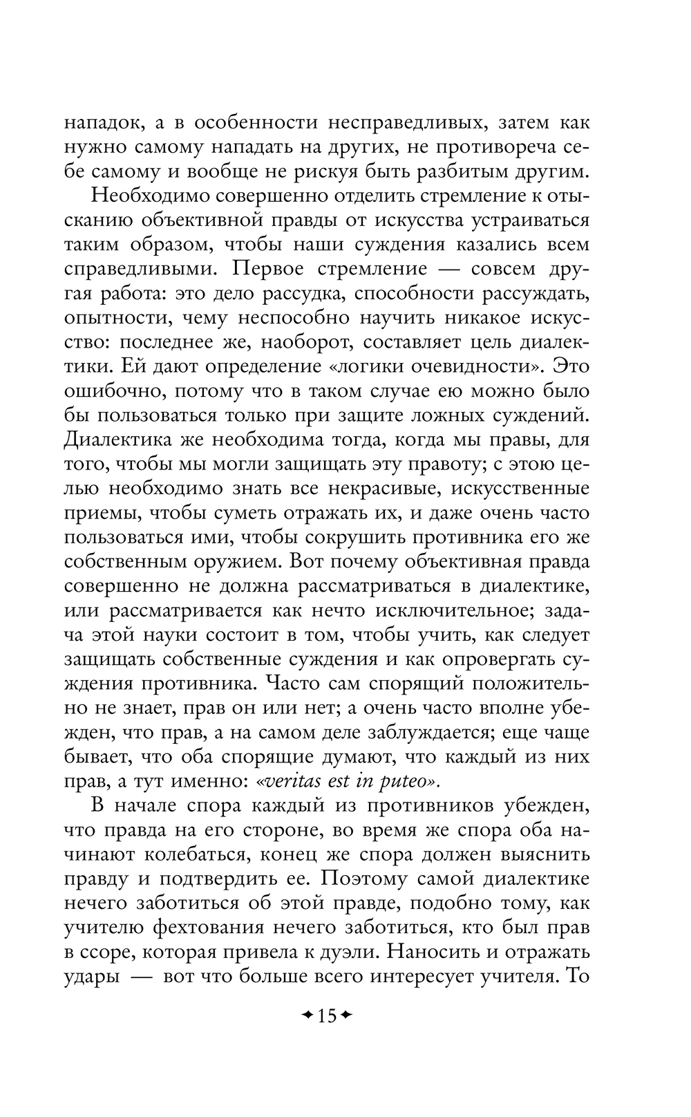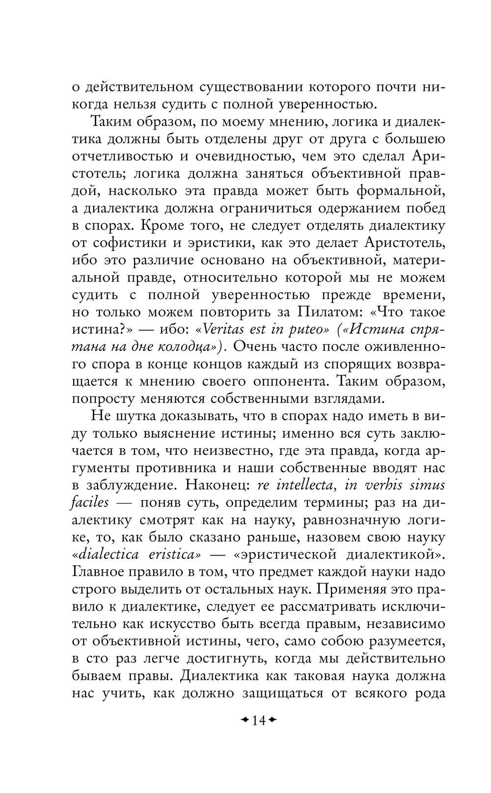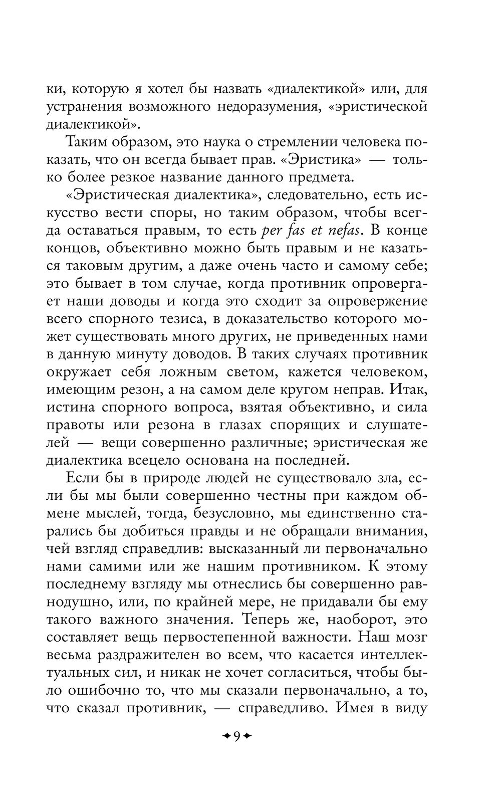 "Искусство побеждать в спорах" – это руководство по ведению диспутов, написанное в XIX веке и не утратившее своей актуальности в веке XXI. В этом произведении Шопенгауэр ставит целью победу в споре и дает конкретные рекомендации для ее последовательного достижения. По мнению автора, для того чтобы одержать победу в споре, необязательно быть фактически правым – нужно лишь использовать правильные приемы. Он приводит более 30 так называемых уловок.
