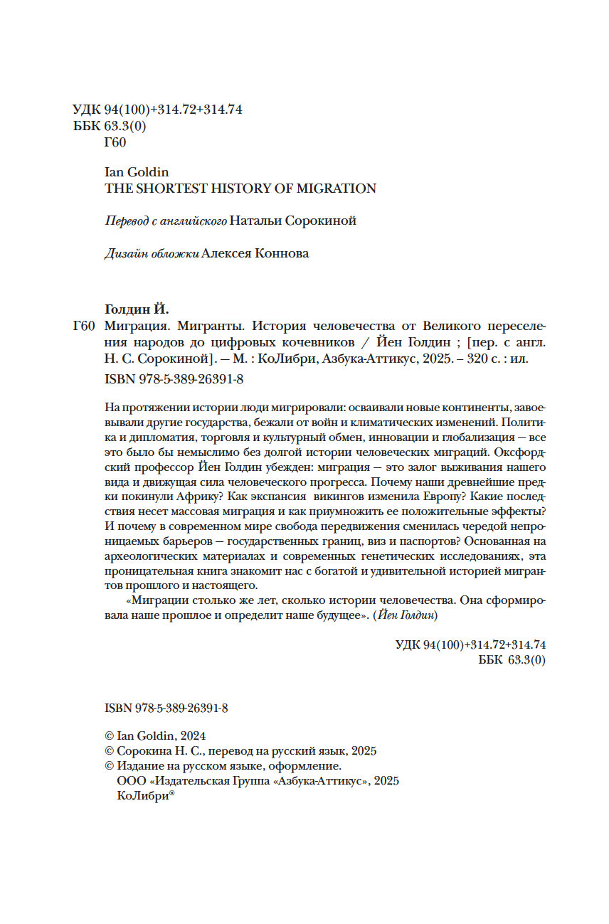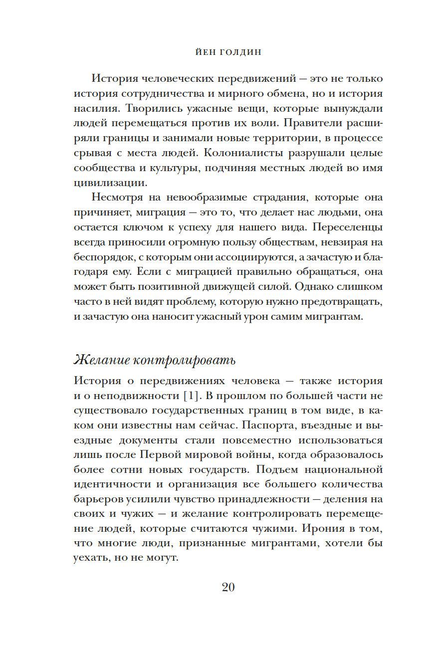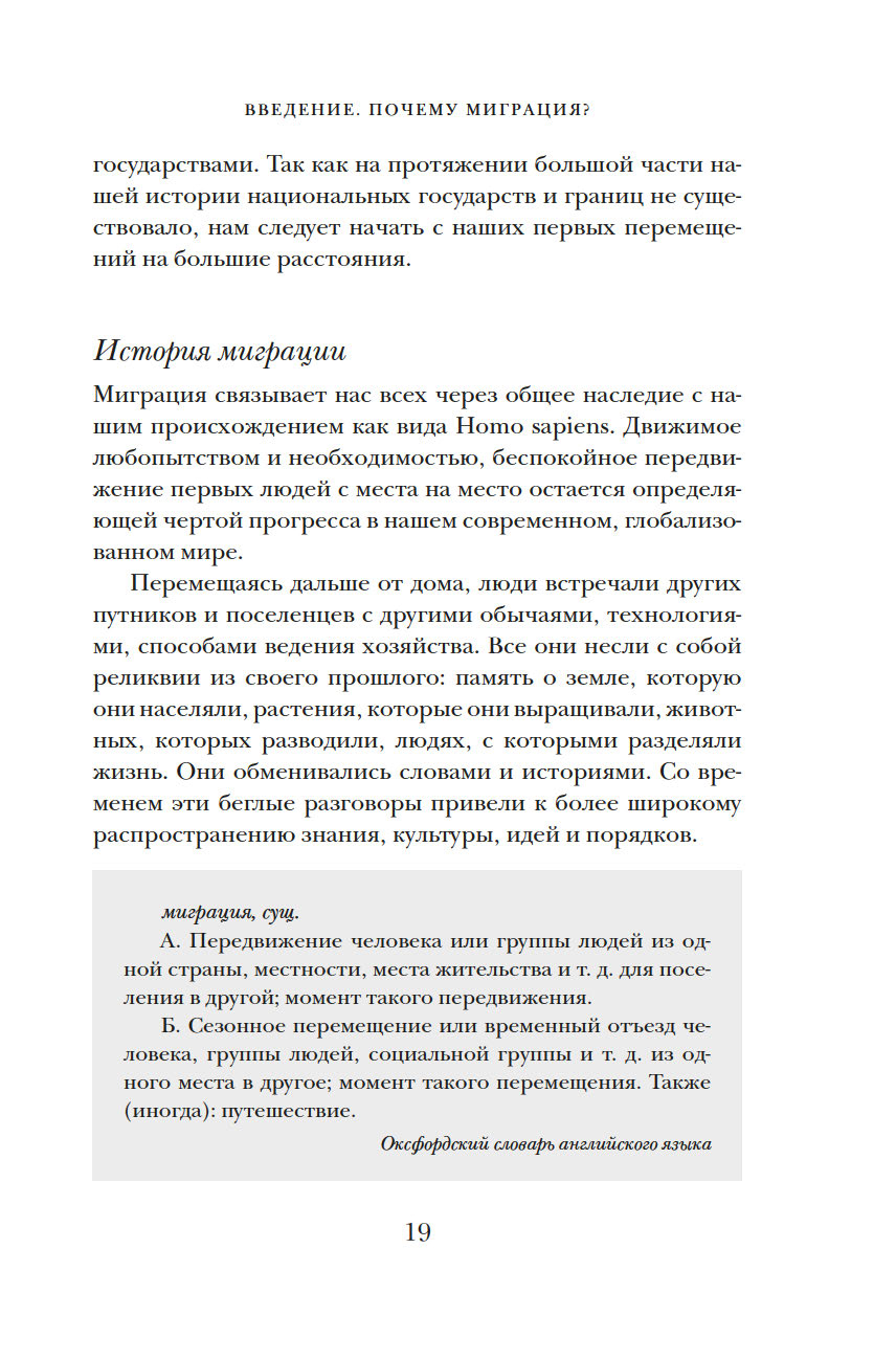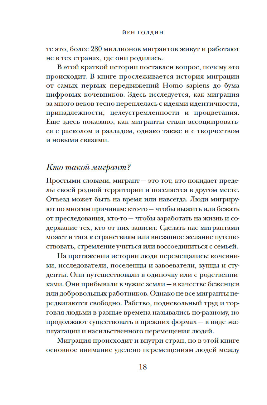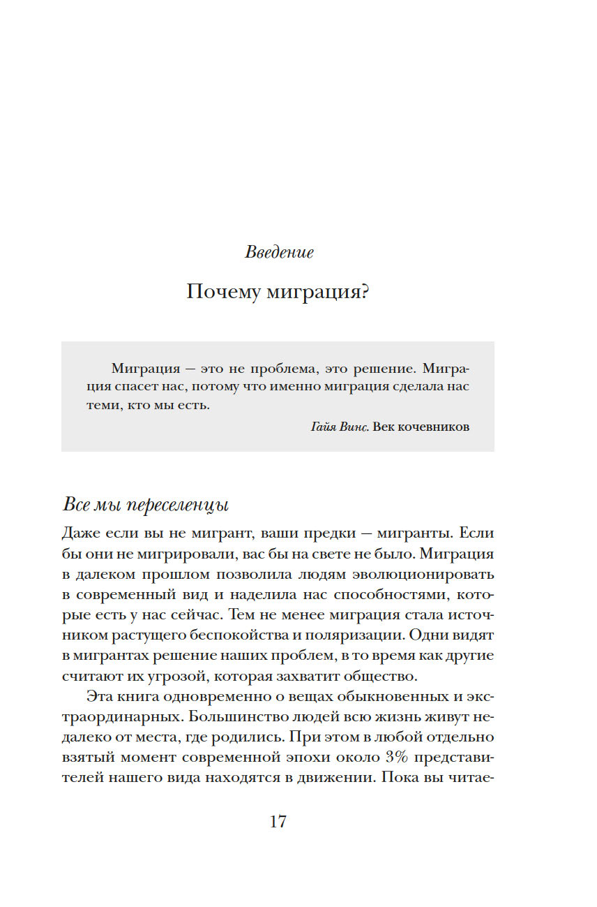 На протяжении истории люди мигрировали: осваивали новые континенты, завоевывали другие государства, бежали от войн и климатических изменений. Политика и дипломатия, торговля и культурный обмен, инновации и глобализация – все это было бы немыслимо без долгой истории человеческих миграций. Оксфордский профессор Йен Голдин убежден: миграция – это залог выживания нашего вида и движущая сила человеческого прогресса. Почему наши древнейшие предки покинули Африку? Как экспансия викингов изменила Европу? Какие последствия несет массовая миграция и как приумножить ее положительные эффекты? И почему в современном мире свобода передвижения сменилась чередой непроницаемых барьеров – государственных границ, виз и паспортов? Основанная на археологических материалах и современных генетических исследованиях, эта проницательная книга знакомит нас с богатой и удивительной историей мигрантов прошлого и настоящего.