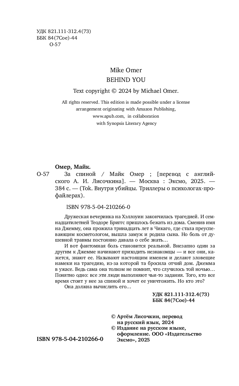 | Серия | Tok. Внутри убийцы. Триллеры о психологах-профайлерах |