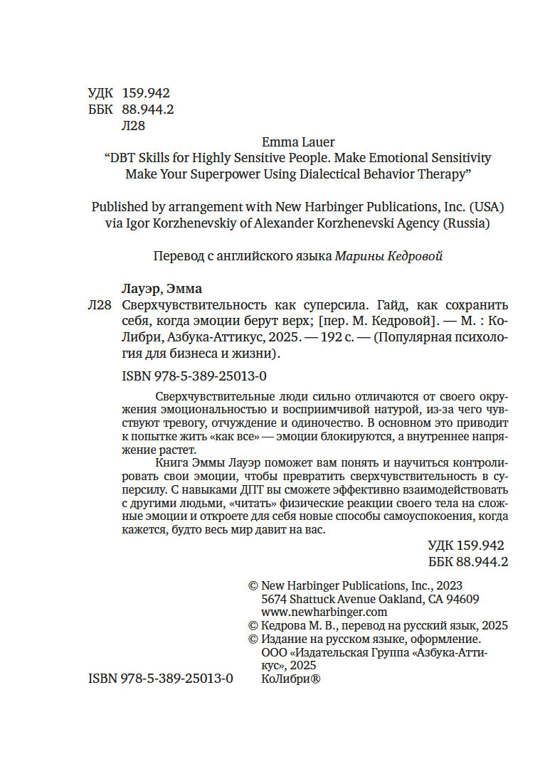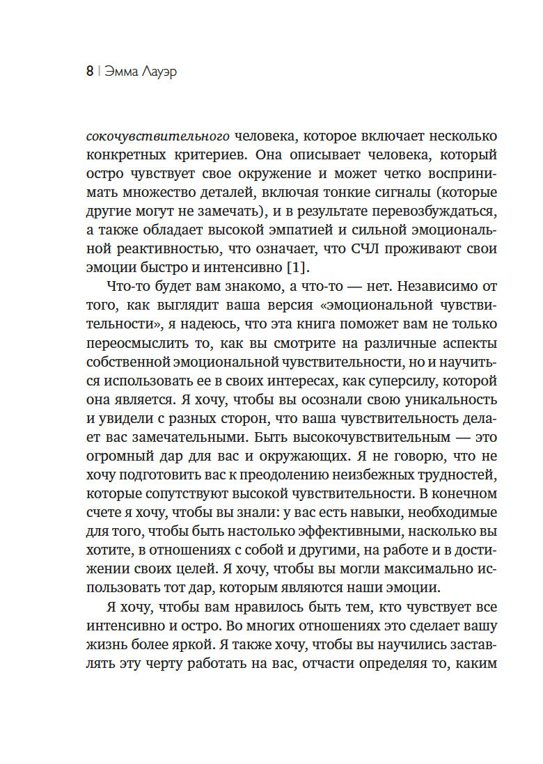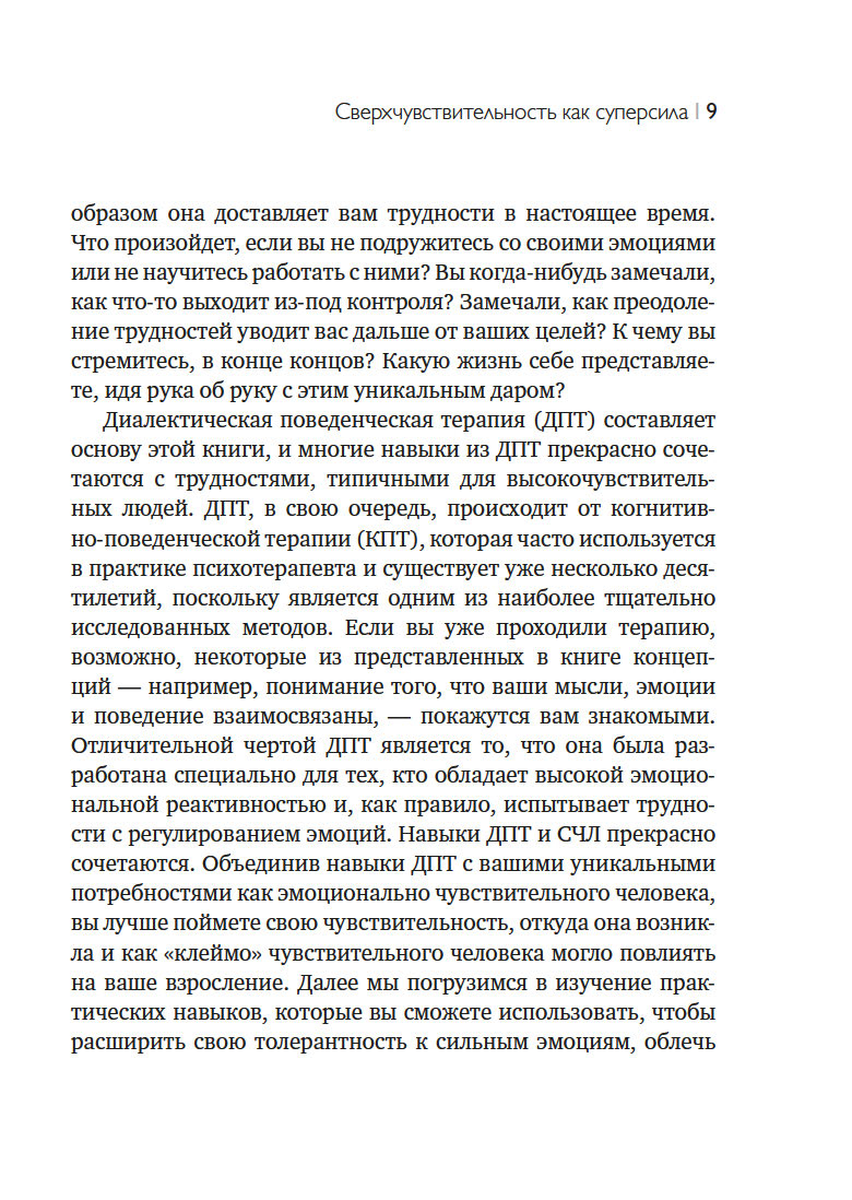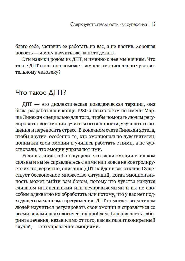 Книга Эммы Лауэр поможет вам понять и научиться контролировать свои эмоции, чтобы превратить сверхчувствительность в суперсилу. С навыками ДПТ вы сможете эффективно взаимодействовать другими людьми, "читать" физические реакции своего тела на сложные эмоции и откроете для себя новые способы самоуспокоения, когда кажется, будто весь мир давит на вас.