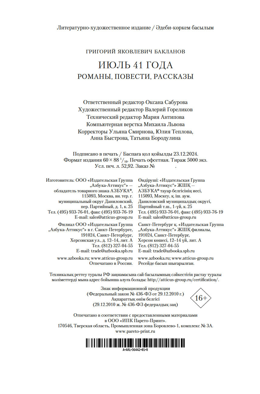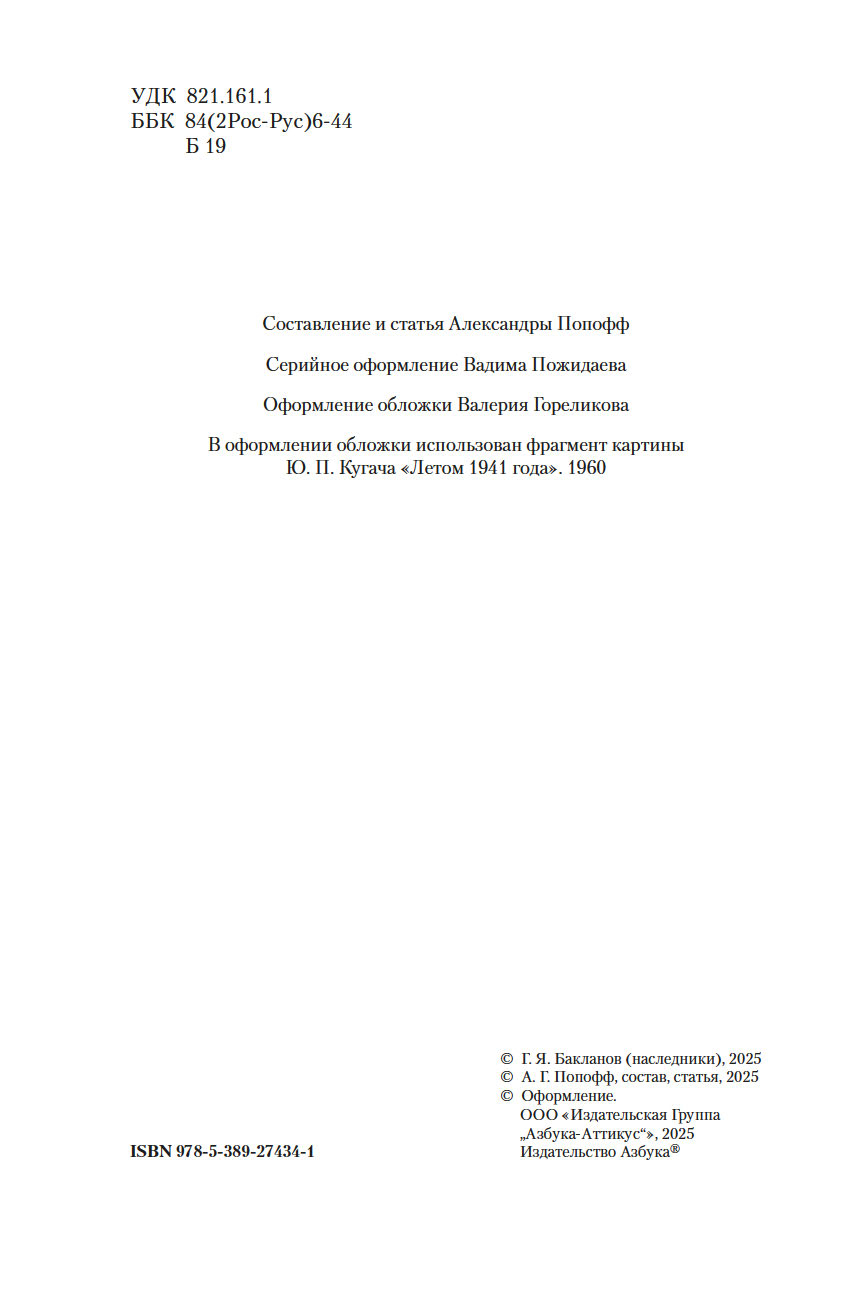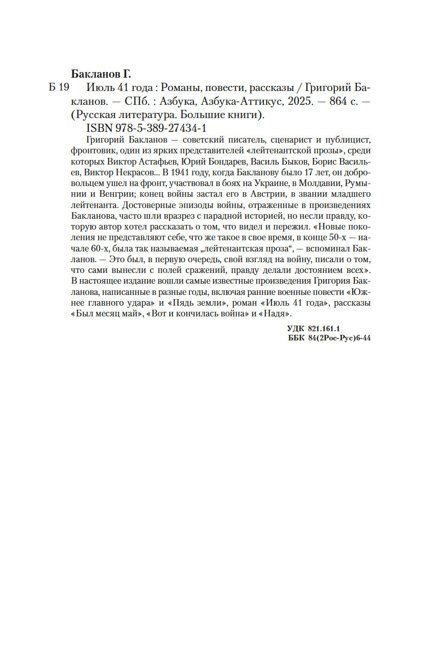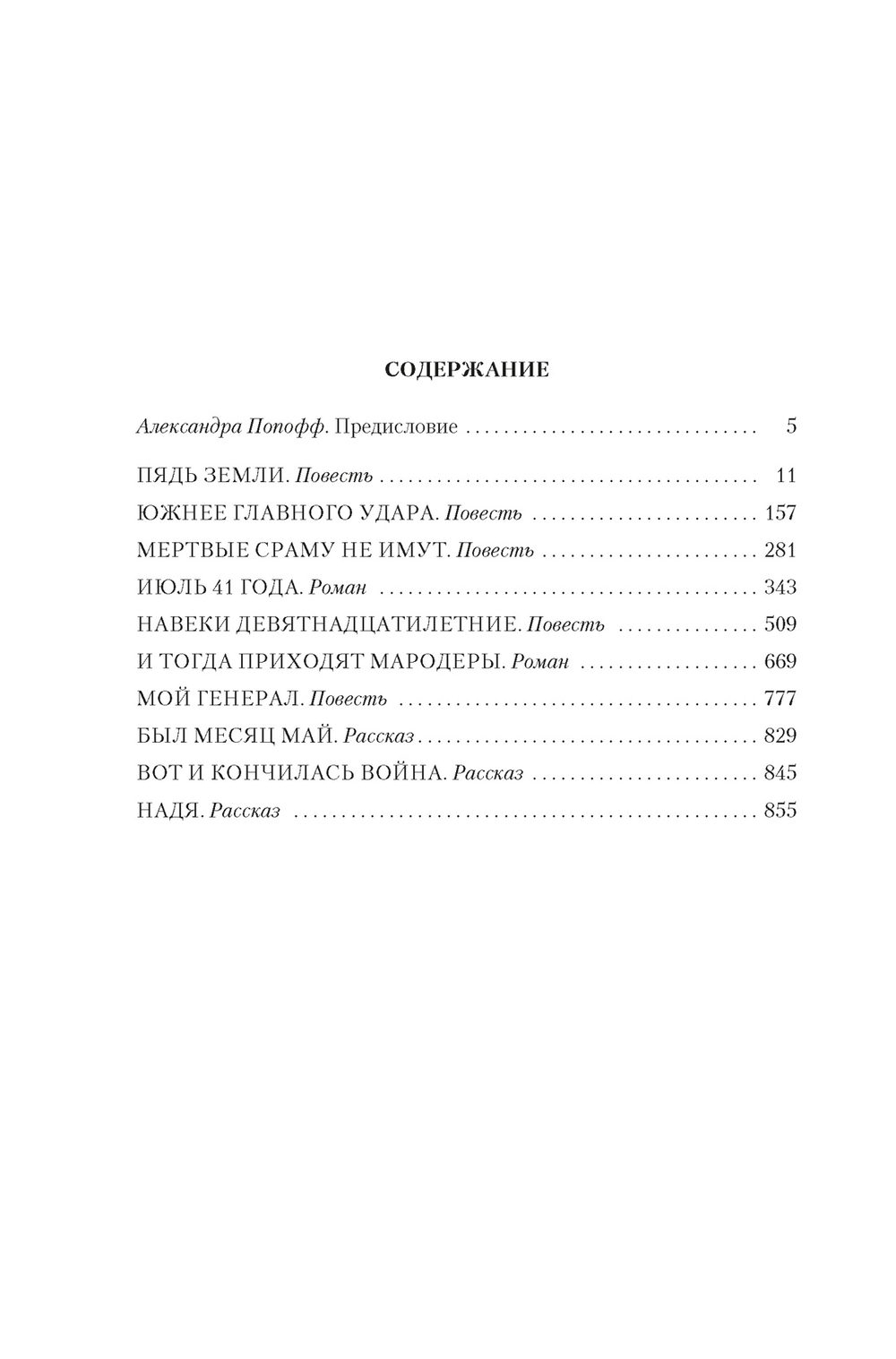 В настоящее издание вошли самые известные произведения Григория Бакланова, написанные в разные годы, включая ранние военные повести "Южнее главного удара" и "Пядь земли", роман "Июль 41 года", рассказы "Был месяц май", "Вот и кончилась война" и "Надя".